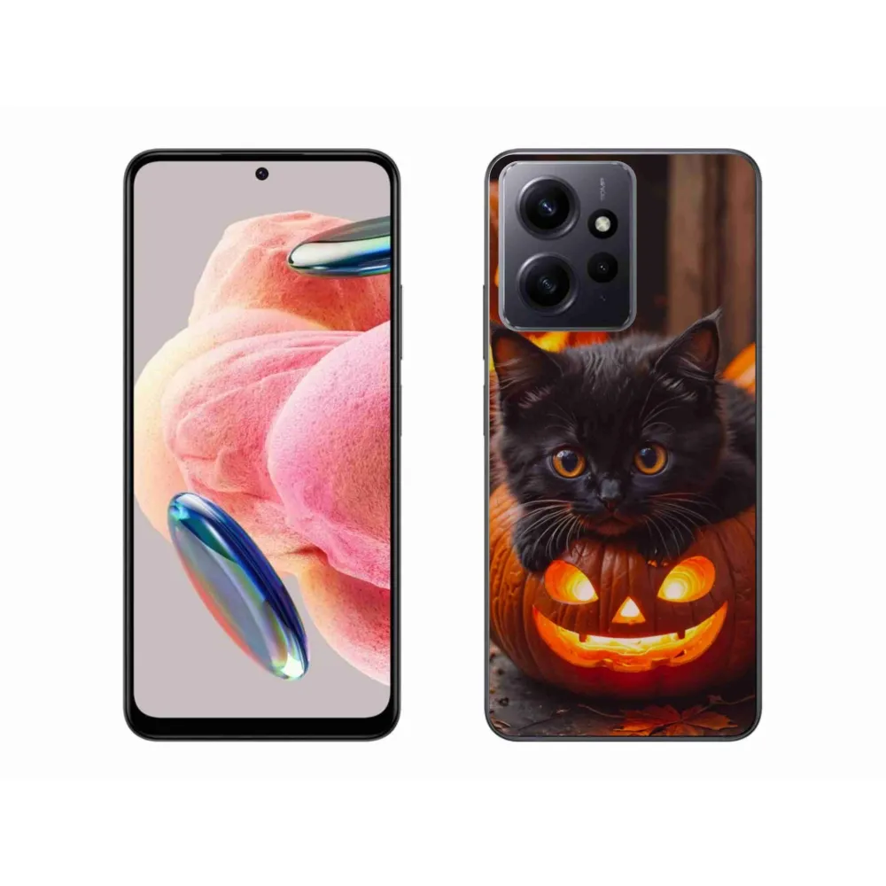 Mačacie púzdro na Xiaomi Redmi Note 12 4G - mačiatko a tekvica poskytuje všetky výhody gélových obalov, a to v zaujímavom dizajne.