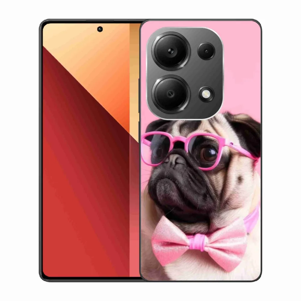 Psie púzdro na Xiaomi Redmi Note 13 Pro 4G/Poco M6 Pro - štýlový mops poskytuje všetky výhody gélových obalov, a to v zaujímavom dizajne.