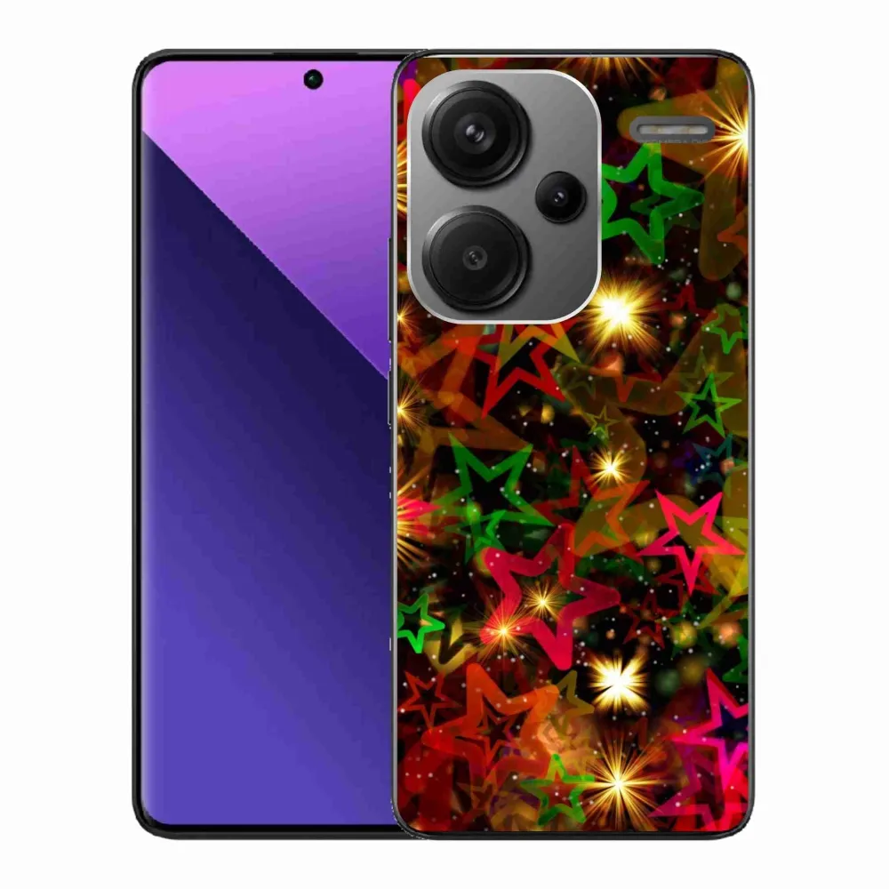 Vianočné puzdro na Xiaomi Redmi Note 13 Pro+ 5G - farebné hviezdičky poskytuje všetky výhody gélových obalov, a to v zaujímavom dizajne.