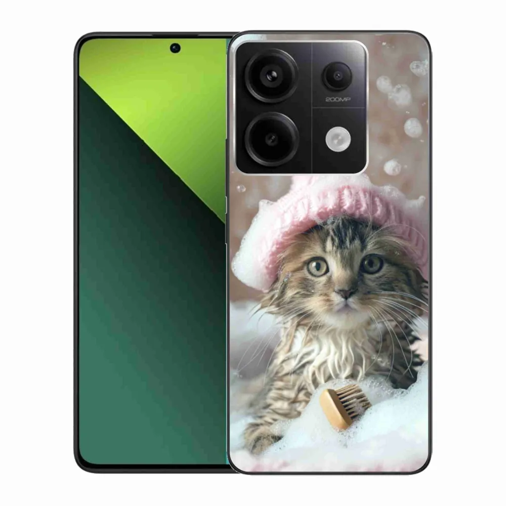 Mačacie púzdro na Xiaomi Redmi Note 13 Pro 5G/Poco X6 5G - mačiatko a kúpeľ poskytuje všetky výhody gélových obalov, a to v zaujímavom dizajne.