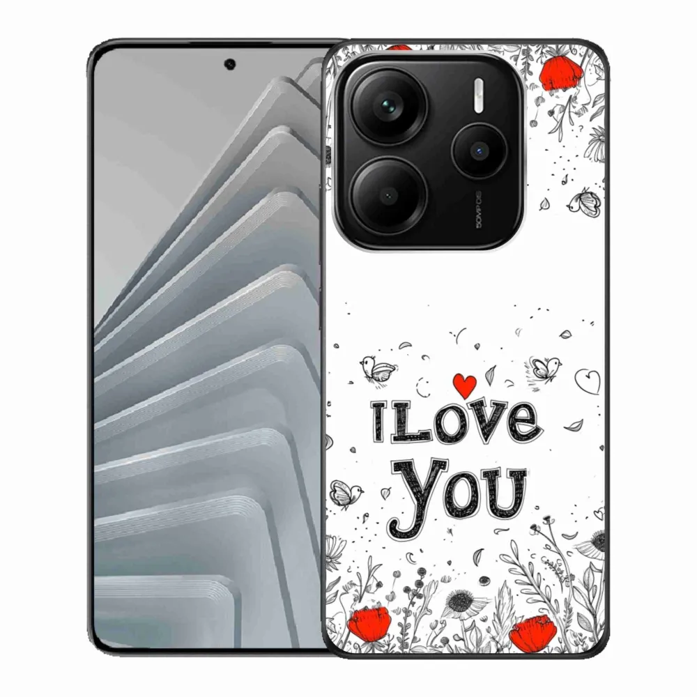 Pružný gélový obal mmCase s obrázkom na Xiaomi Redmi Note 14 5G - I love you biele pozadie