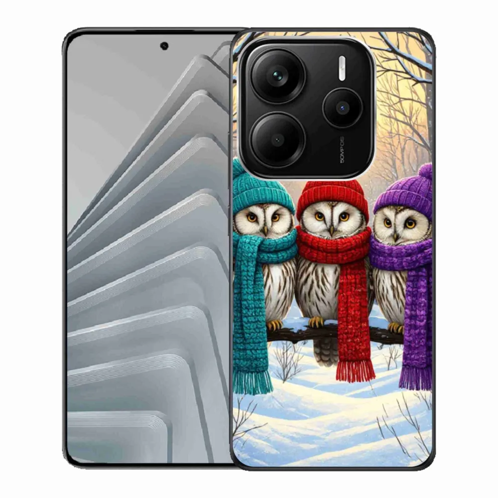 Vianočné puzdro na Xiaomi Redmi Note 14 5G - soví priatelia poskytuje všetky výhody gélových obalov, a to v zaujímavom dizajne.