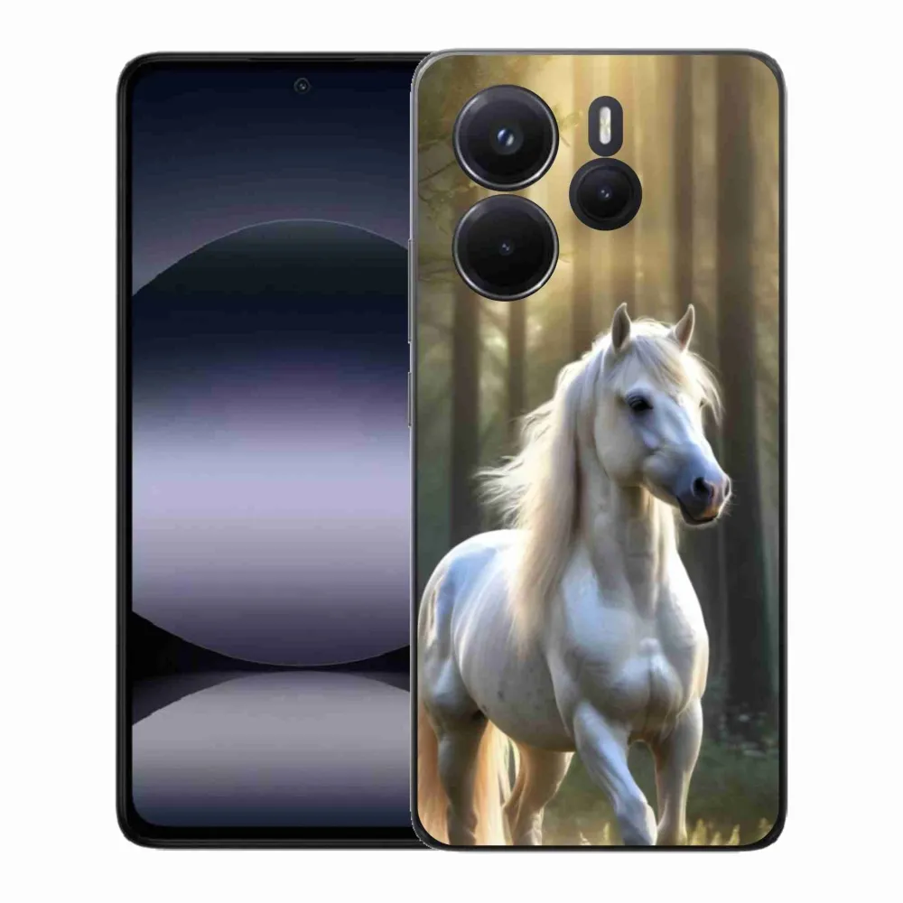 Pružný gélový obal mmCase s obrázkom na Xiaomi Redmi Note 14 - biely kôň 3