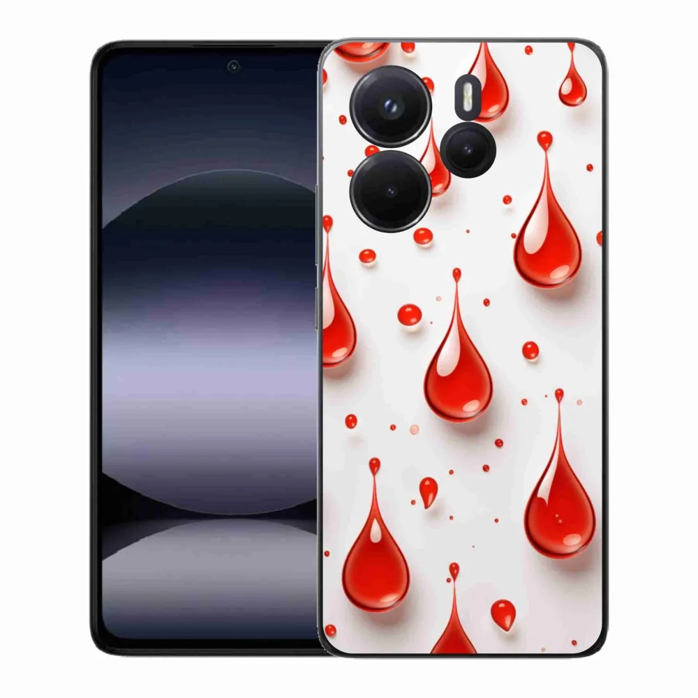 Pružný gélový obal mmCase s obrázkom na Xiaomi Redmi Note 14 - červené kvapky