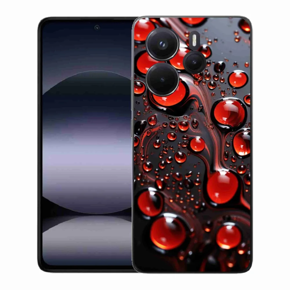 Pružný gélový obal mmCase s obrázkom na Xiaomi Redmi Note 14 - červené kvapky 2