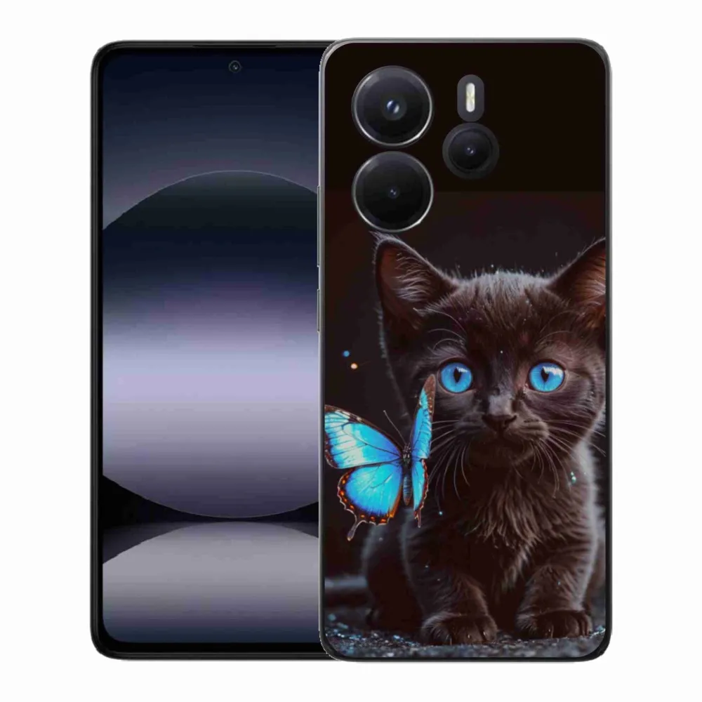 Pružný gélový obal mmCase s obrázkom na Xiaomi Redmi Note 14 - čierne mačiatko 3