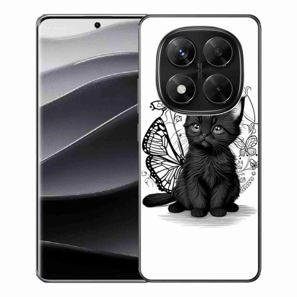 Pružný gélový obal mmCase s obrázkom na Xiaomi Redmi Note 14 Pro 5G/Poco X7 5G - čierne mačiatko