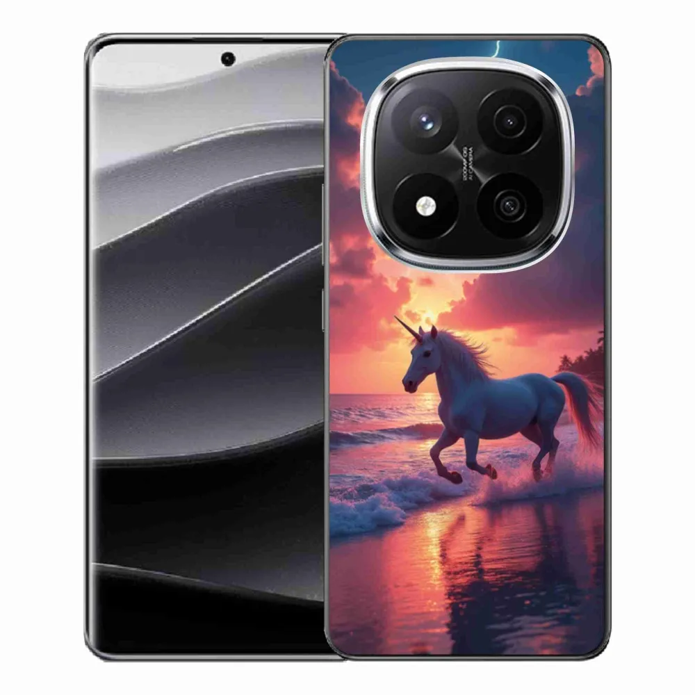 Púzdro s motívom koňa na Xiaomi Redmi Note 14 Pro+ 5G - jednorožec na pláži poskytuje všetky výhody gélových krytov, a to v zaujímavom dizajne.