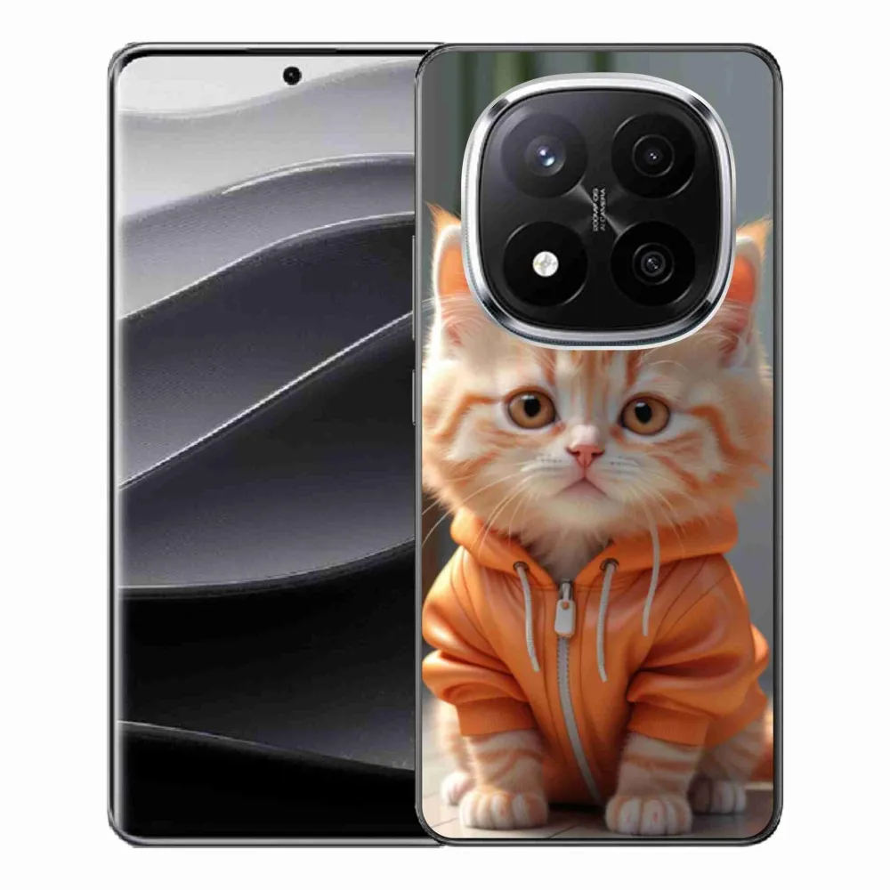 Pružný gélový obal mmCase s obrázkom na Xiaomi Redmi Note 14 Pro+ 5G - mačiatko v mikine