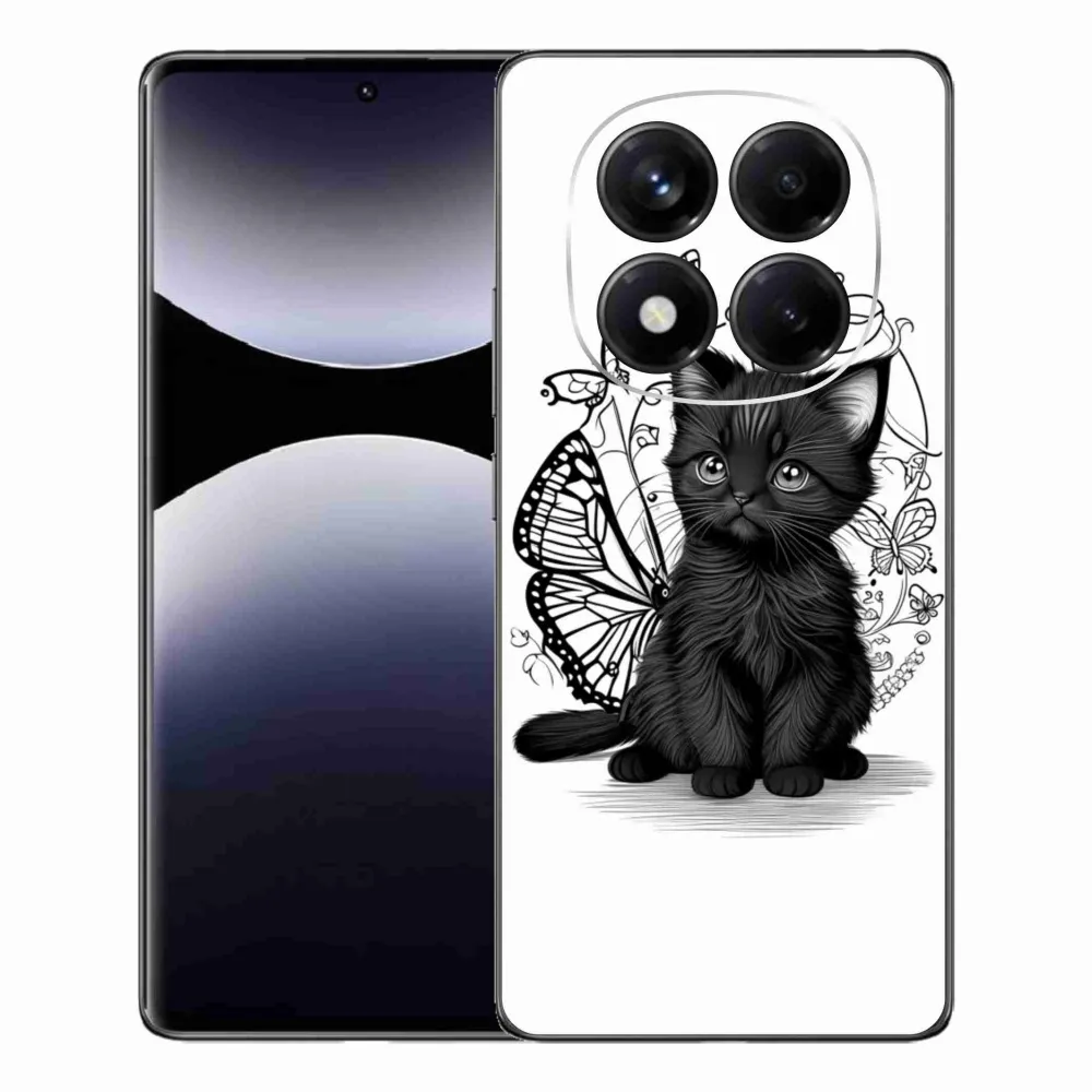 Pružný gélový obal mmCase s obrázkom na Xiaomi Redmi Note 14 Pro - čierne mačiatko