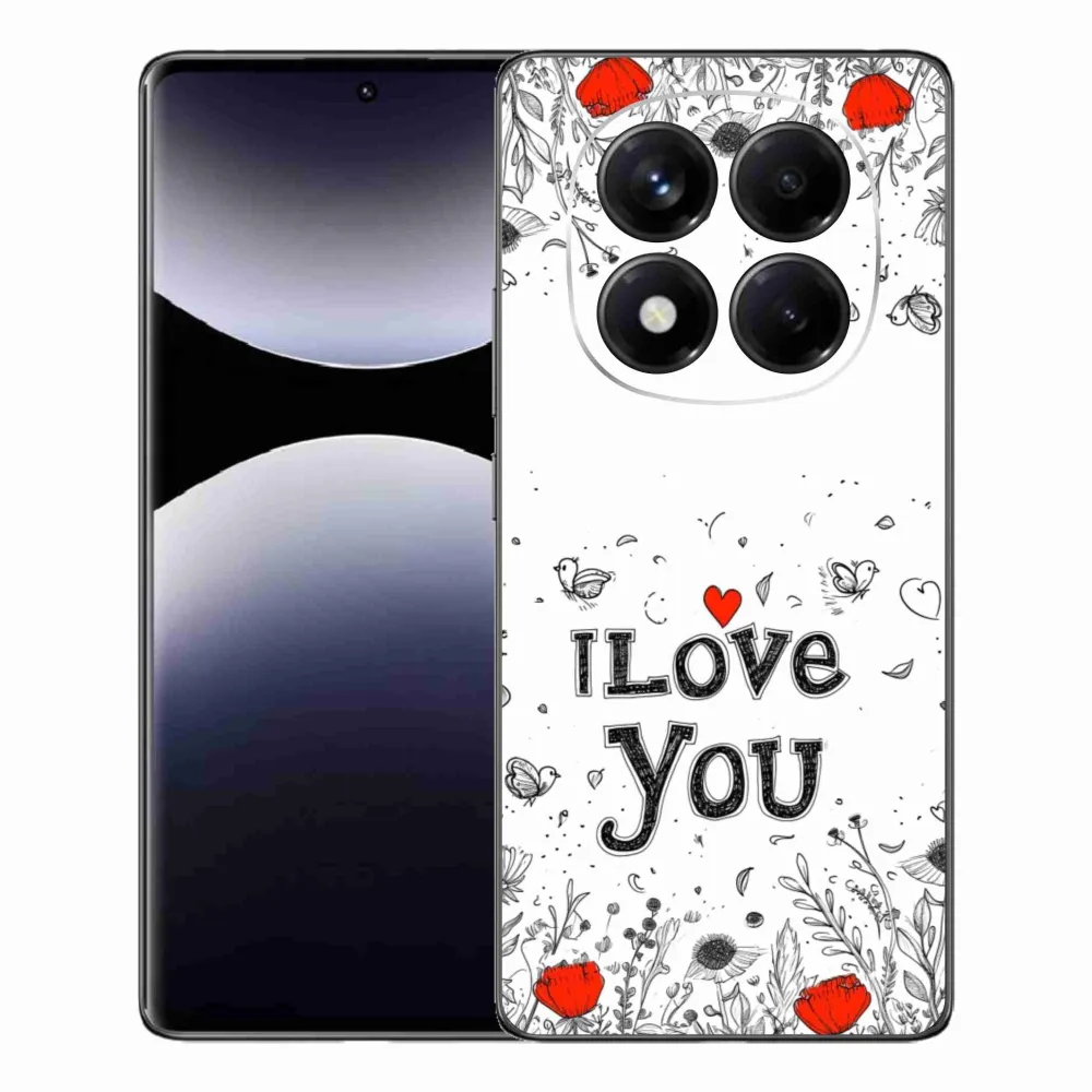 Pružný gélový obal mmCase s obrázkom na Xiaomi Redmi Note 14 Pro - I love you biele pozadie
