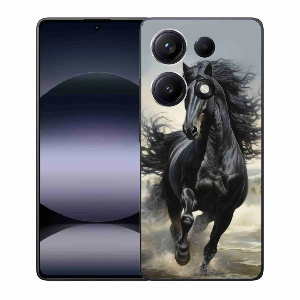 Pružný gélový obal mmCase s obrázkom na Xiaomi Redmi Note 14S - bežiaci čierny kôň