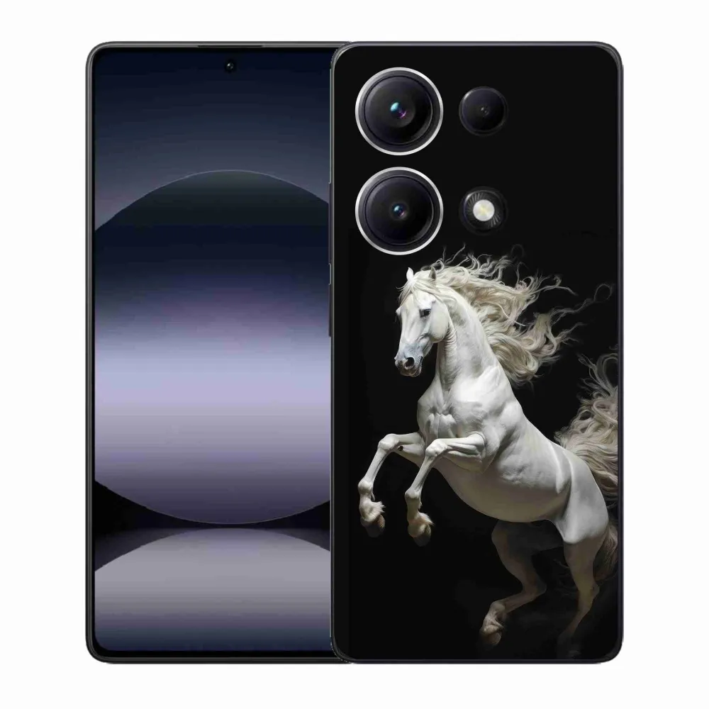 Pružný gélový obal mmCase s obrázkom na Xiaomi Redmi Note 14S - biely kôň 4