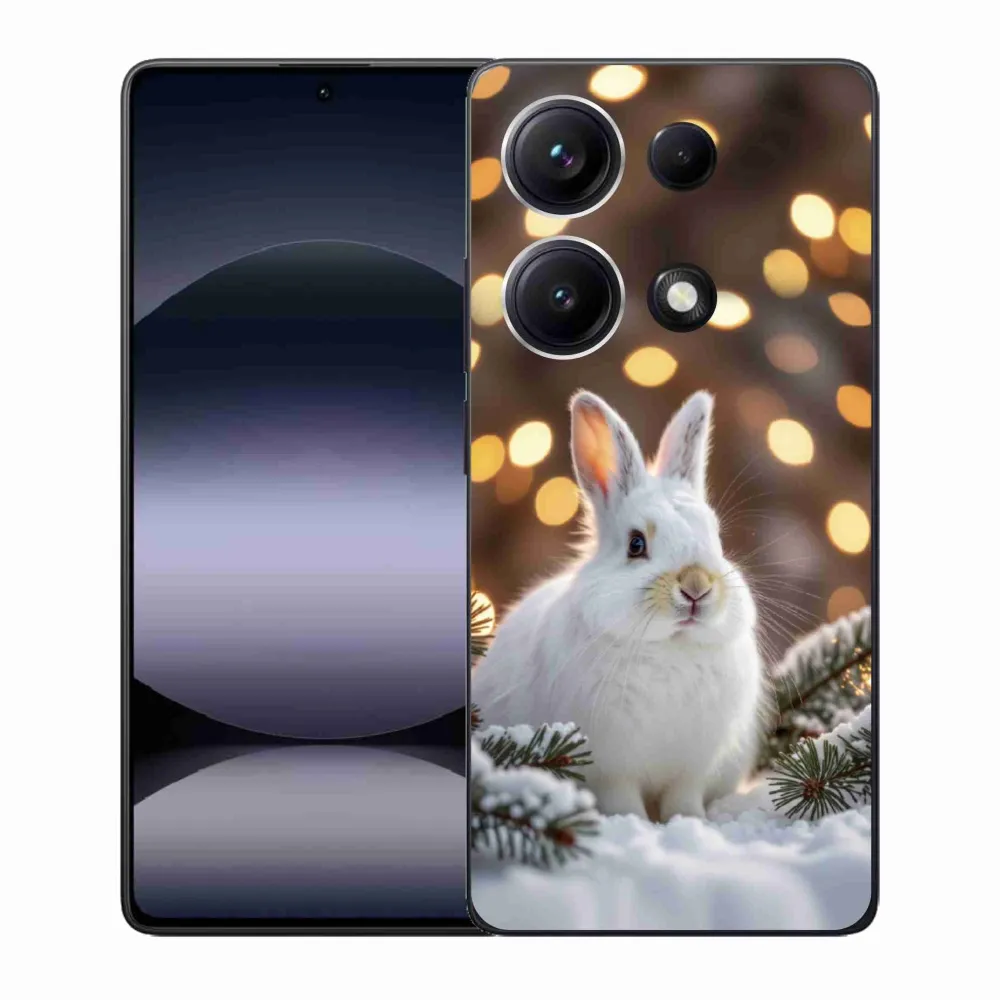Pružný gélový obal mmCase s obrázkom na Xiaomi Redmi Note 14S - biely zajac