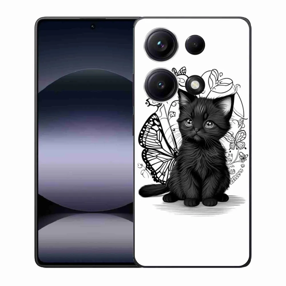 Pružný gélový obal mmCase s obrázkom na Xiaomi Redmi Note 14S - čierne mačiatko