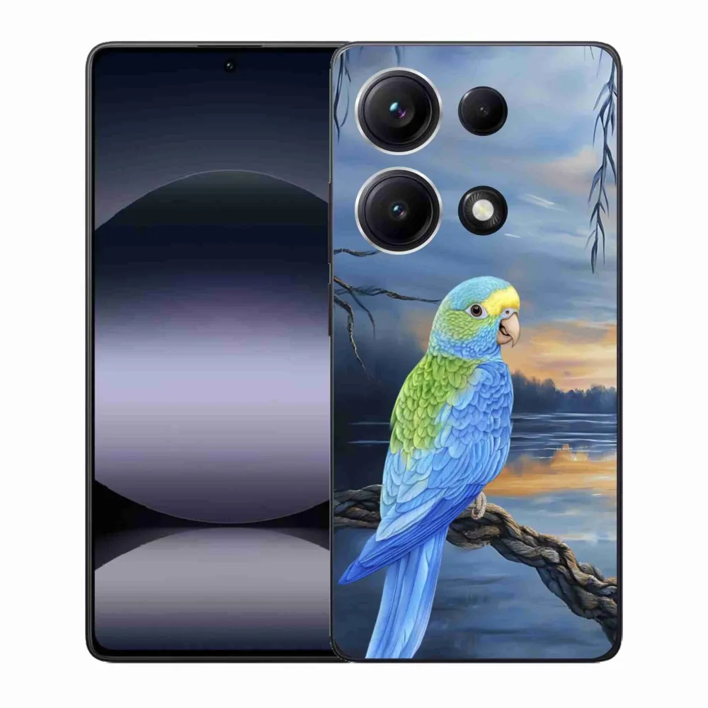 Pružný gélový obal mmCase s obrázkom na Xiaomi Redmi Note 14S - modrý papagáj