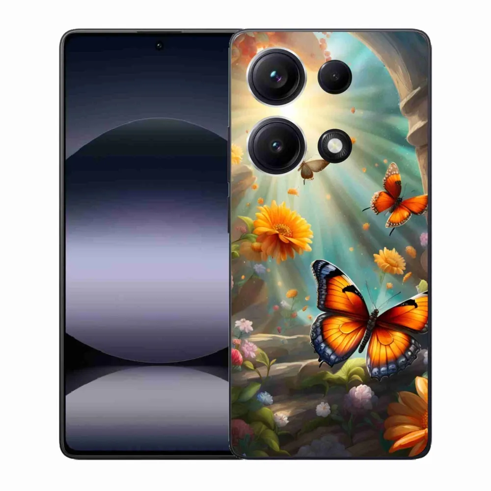 Pružný gélový obal mmCase s obrázkom na Xiaomi Redmi Note 14S - motýlia záhrada 2