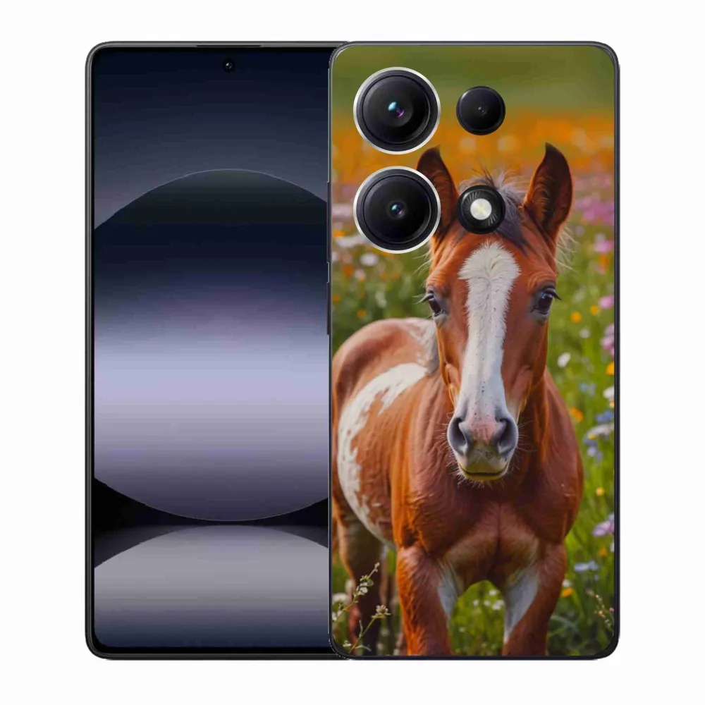 Púzdro s motívom koňa na Xiaomi Redmi Note 14S - roztomilé žriebä poskytuje všetky výhody gélových krytov, a to v zaujímavom dizajne.