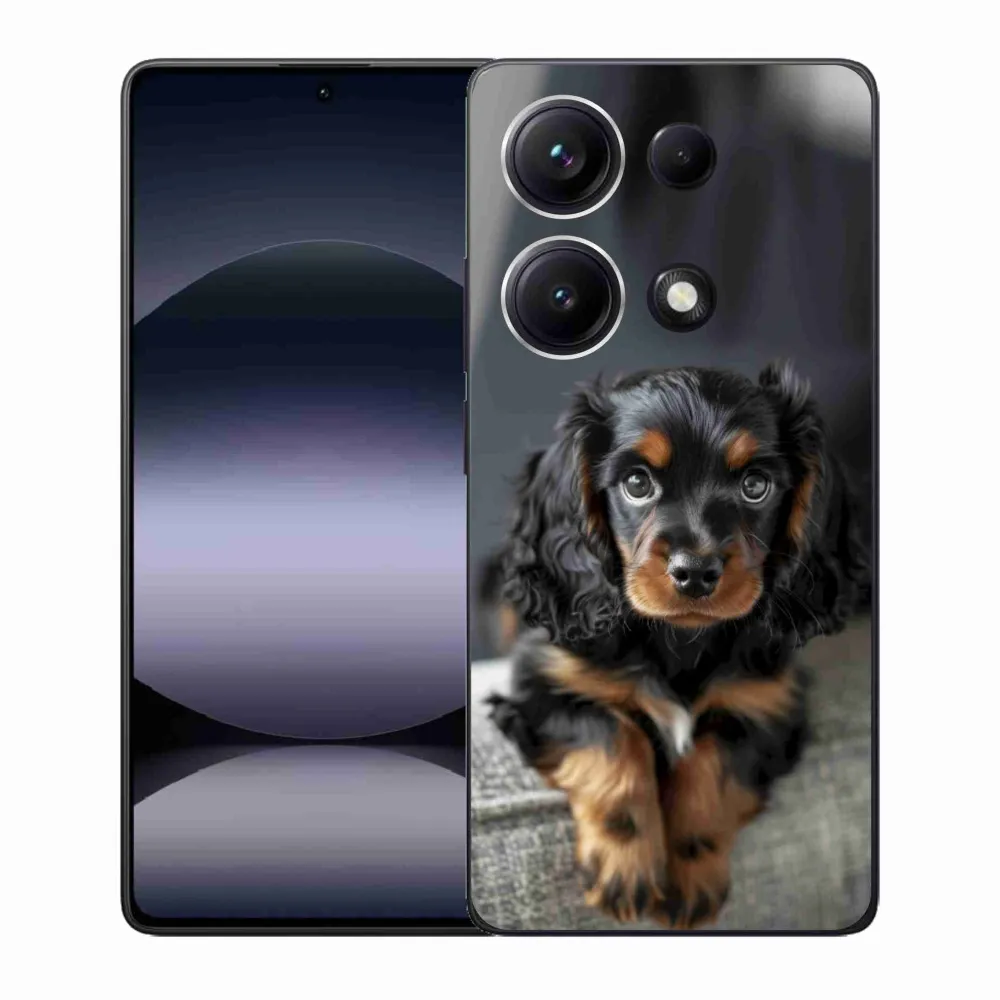 Psie púzdro na Xiaomi Redmi Note 14S - roztomilý dlhosrstý jazvečík poskytuje všetky výhody gélových obalov, a to v zaujímavom dizajne.