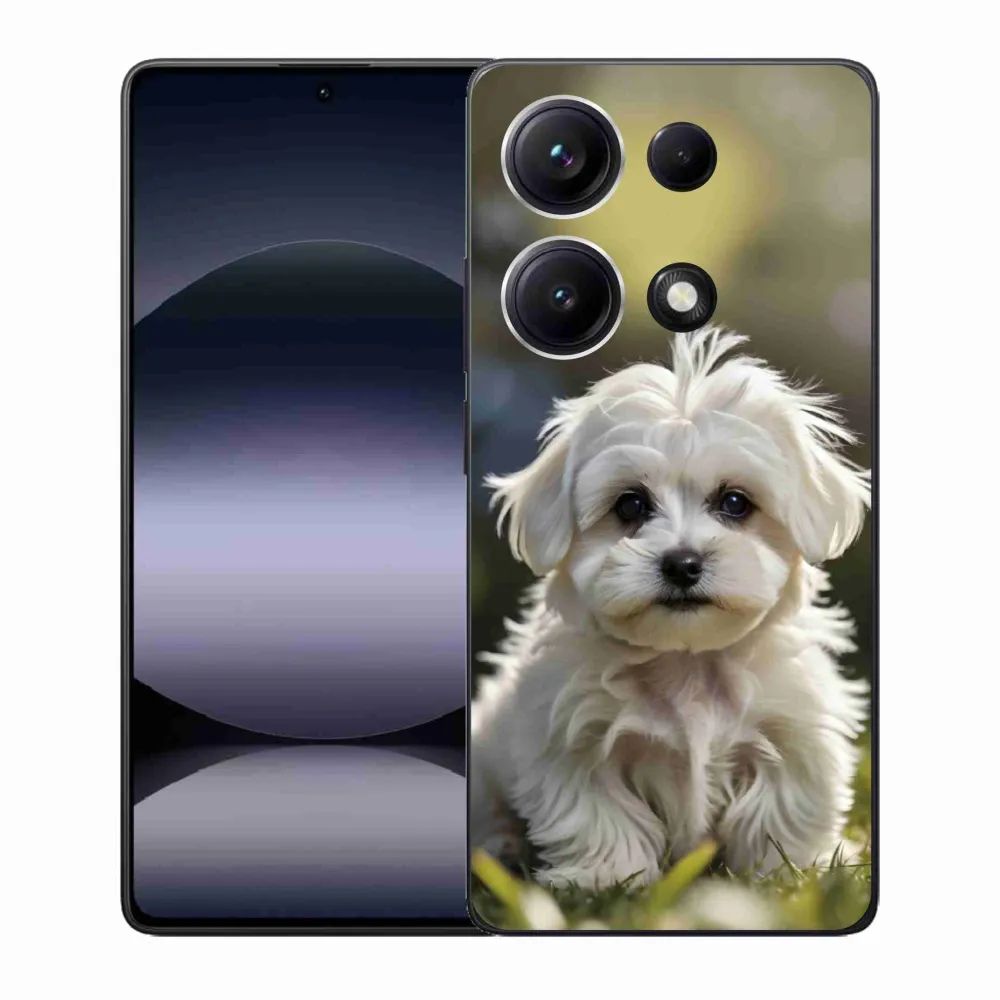 Psie púzdro na Xiaomi Redmi Note 14S - roztomilý maltézsky psík poskytuje všetky výhody gélových obalov, a to v zaujímavom dizajne.