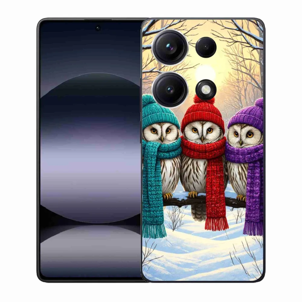 Vianočné puzdro na Xiaomi Redmi Note 14S - soví priatelia poskytuje všetky výhody gélových obalov, a to v zaujímavom dizajne.
