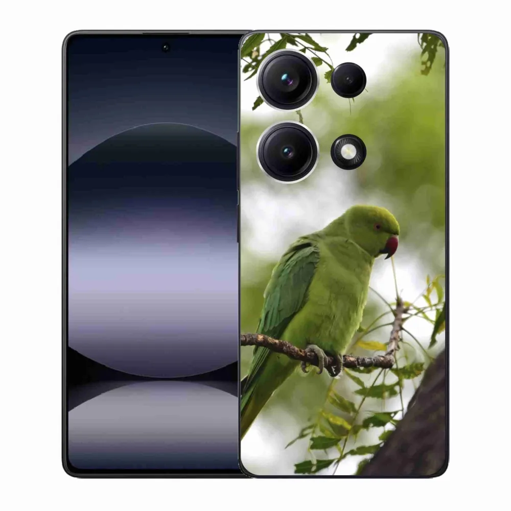 Zvieracie puzdro na Xiaomi Redmi Note 14S - zelený papagáj poskytuje všetky výhody gélových krytov, a to v zaujímavom dizajne.