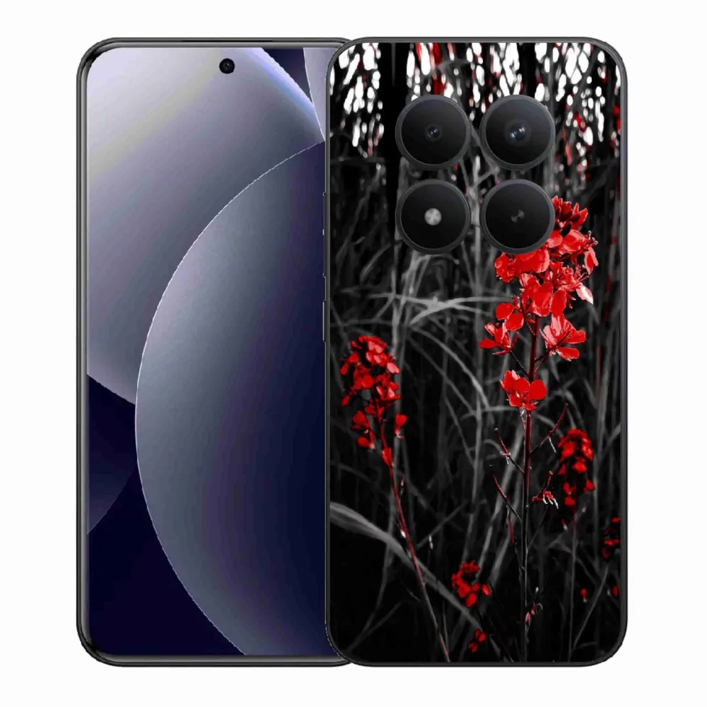 Kvetinové púzdro na Xiaomi Redmi Note 15 Pro+ 5G/Xiaomi Poco M8 Pro 5G - červená rastlina poskytuje všetky výhody gélových obalov, a to v zaujímavom dizajne.