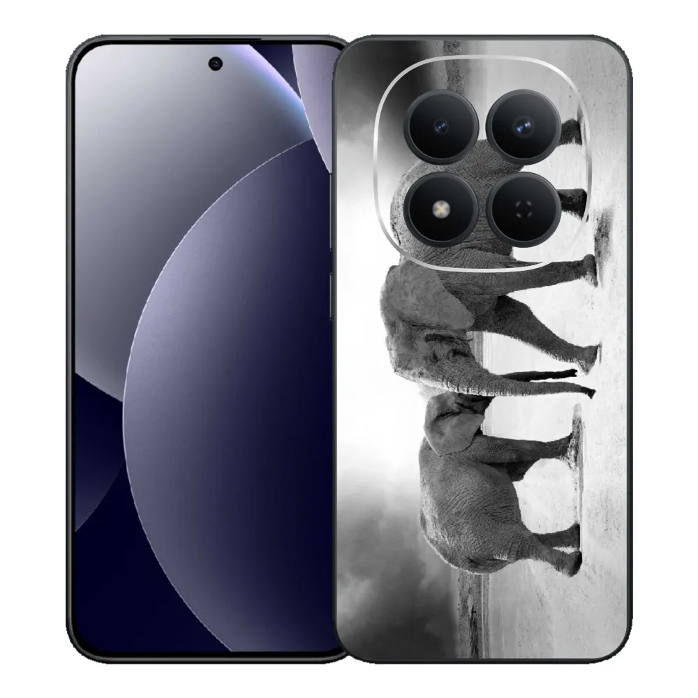 Zvieracie púzdro na Xiaomi Redmi Note 15 Pro 5G - čiernobieli slony poskytuje všetky výhody gélových obalov, a to v zaujímavom dizajne.