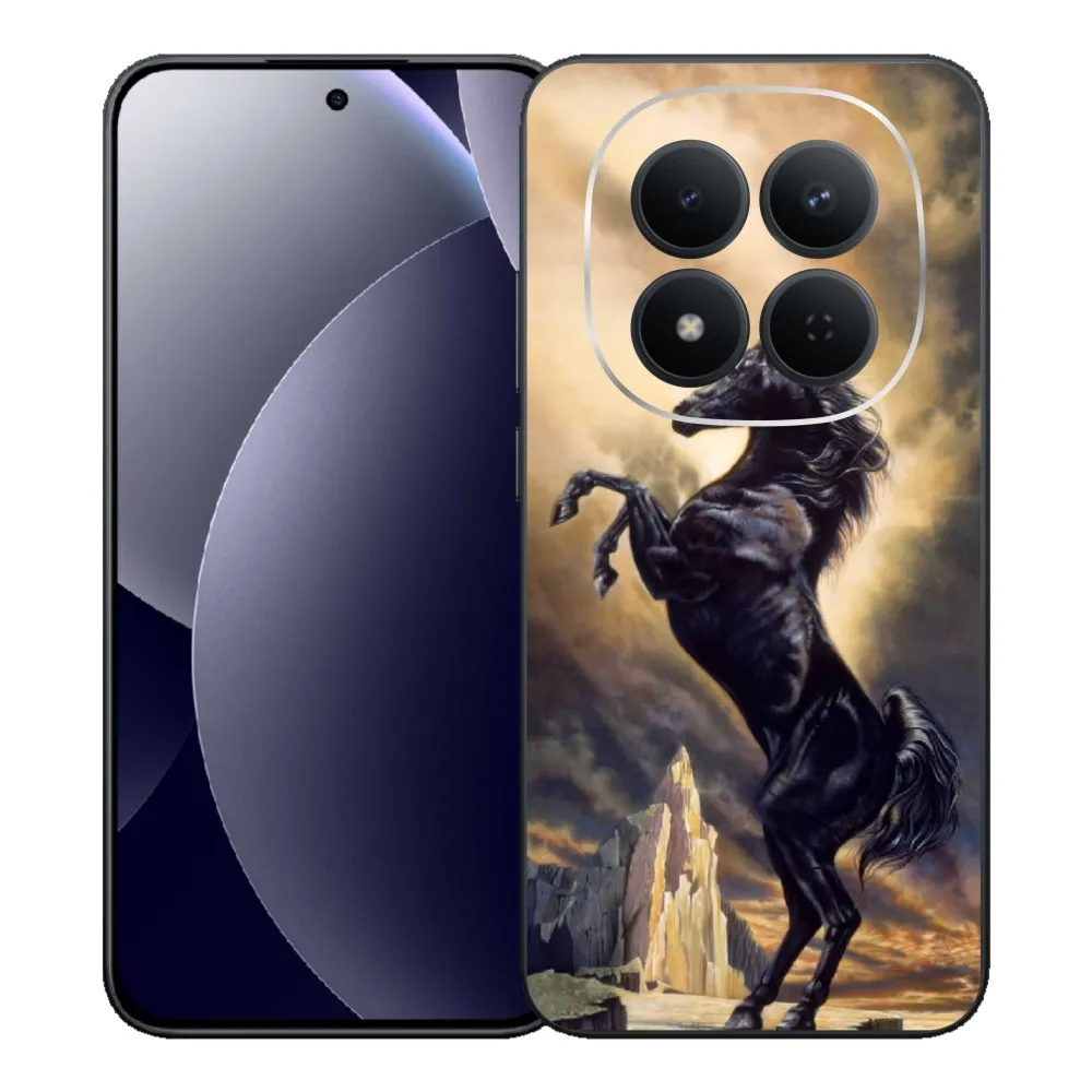 Pružný gélový obal mmCase s obrázkom na Xiaomi Redmi Note 15 Pro 5G - čierny kreslený kôň