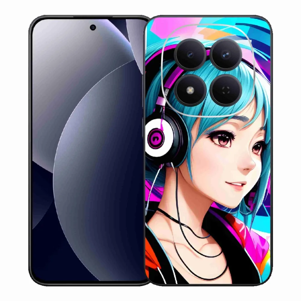 Púzdro s motívom dievča so slúchadlami na Xiaomi Redmi Note 15 Pro 5G poskytuje všetky výhody gélových obalov, a to v zaujímavom dizajne.