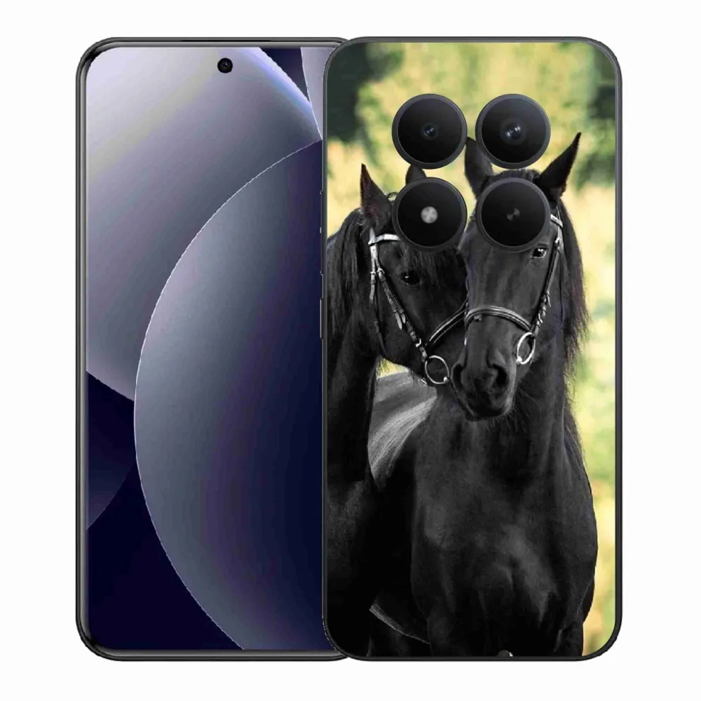 Púzdro s motívom koní na Xiaomi Redmi Note 15 Pro+ 5G/Xiaomi Poco M8 Pro 5G - dva čierne kone poskytuje všetky výhody gélových krytov, a to v zaujímavom dizajne.