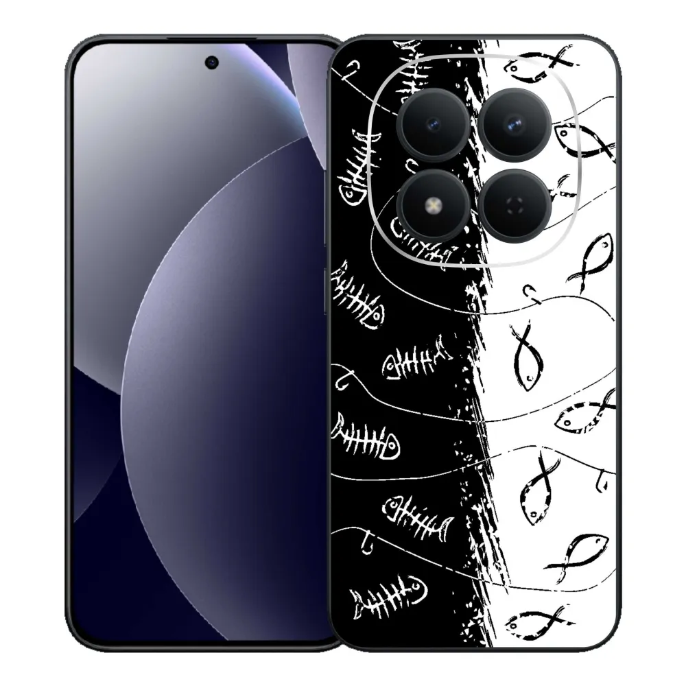 Púzdro pre rybárov na Xiaomi Redmi Note 15 Pro 5G - kostry a rybky poskytuje všetky výhody gélových krytov, a to v zaujímavom dizajne.
