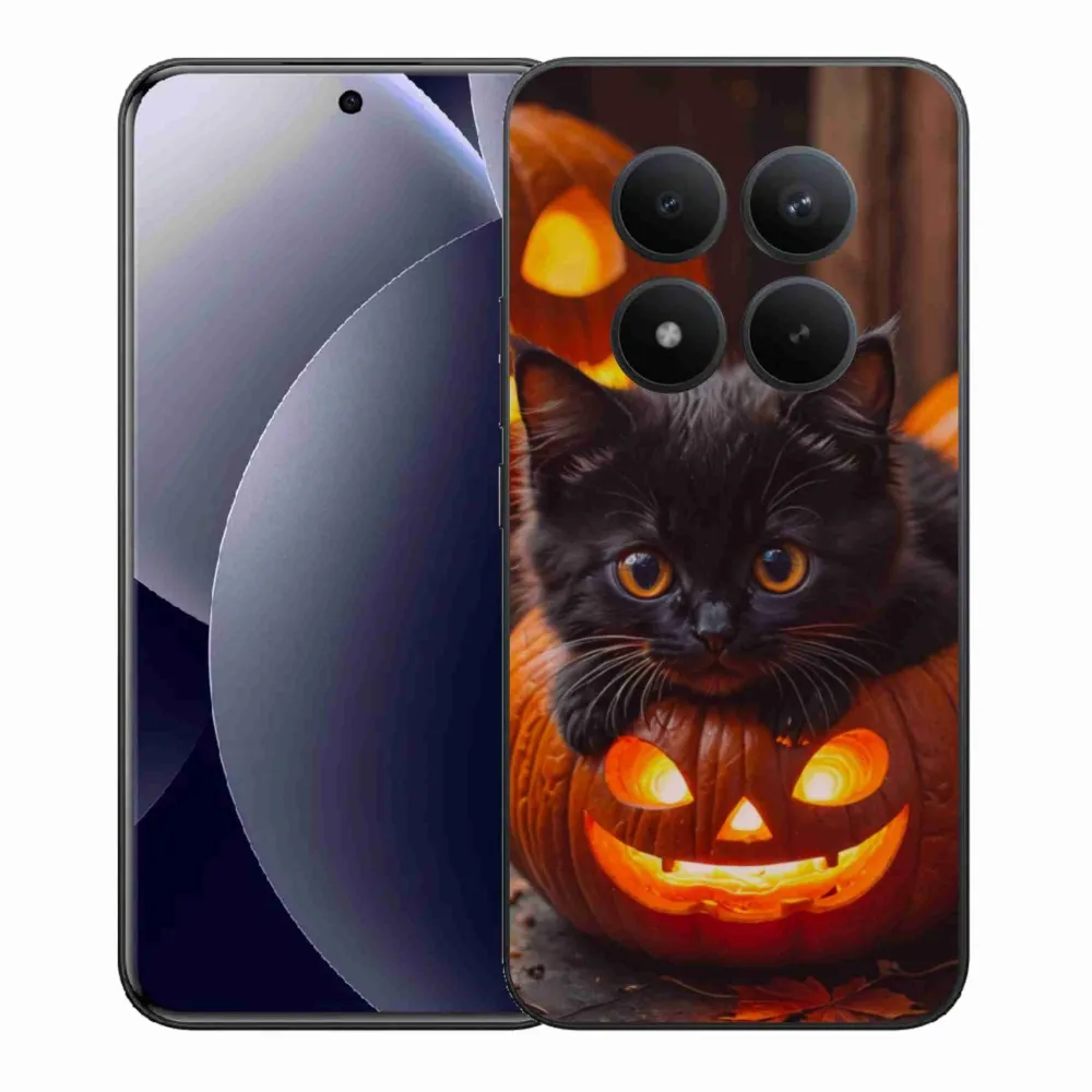 Mačacie púzdro na Xiaomi Redmi Note 15 Pro+ 5G/Xiaomi Poco M8 Pro 5G - mačiatko a tekvica poskytuje všetky výhody gélových obalov, a to v zaujímavom dizajne.