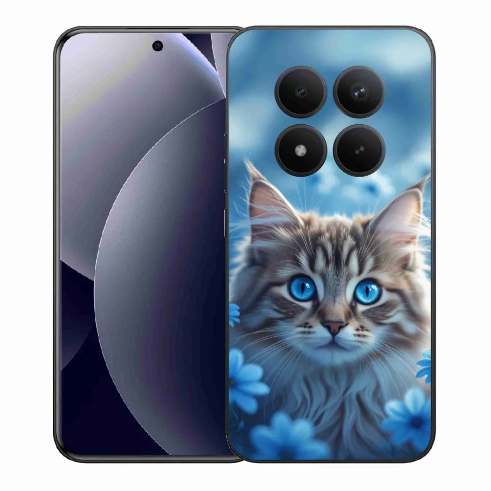 Pružný gélový obal mmCase s obrázkom na Xiaomi Redmi Note 15 Pro+ 5G - mačiatko v modrých kvetoch