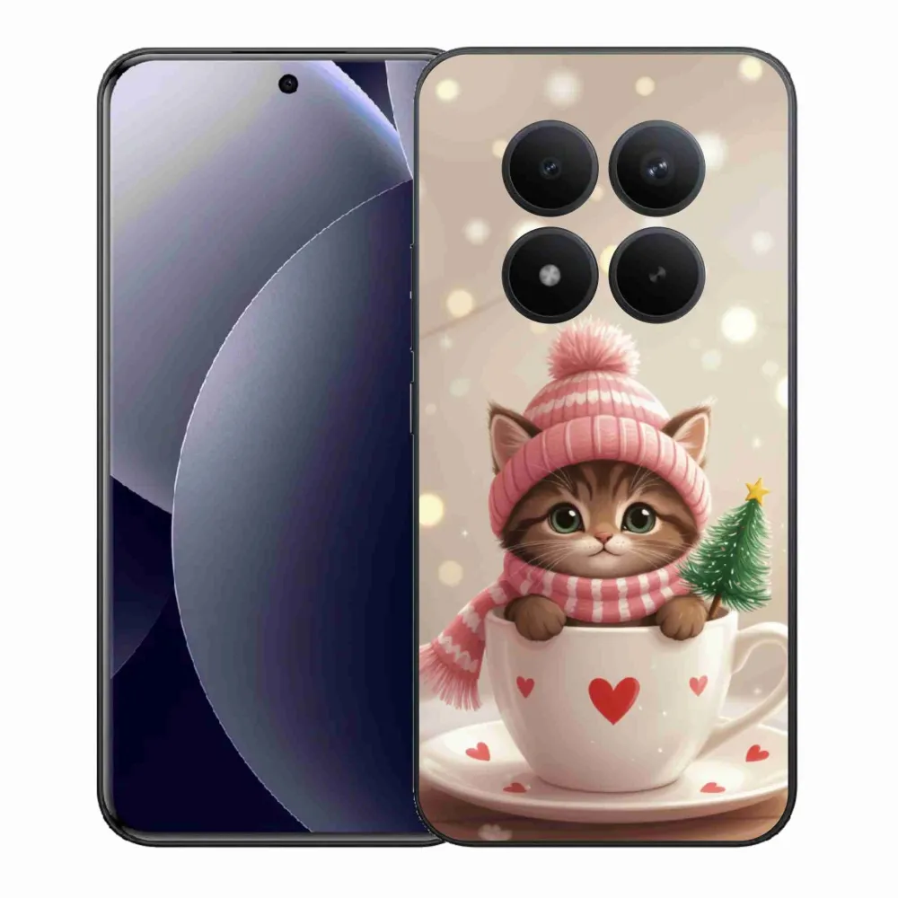 Pružný gélový obal mmCase s obrázkom na Xiaomi Redmi Note 15 Pro+ 5G - vianočné mačiatko v hrnčeku