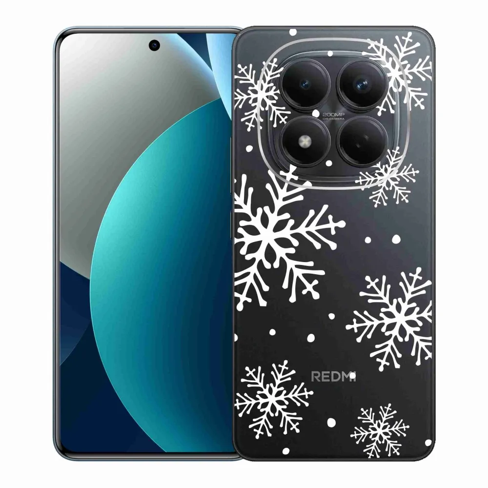 Pružný gélový obal mmCase s obrázkom na Xiaomi Redmi Note 15 Pro - biele vločky na priehľadnom pozadí