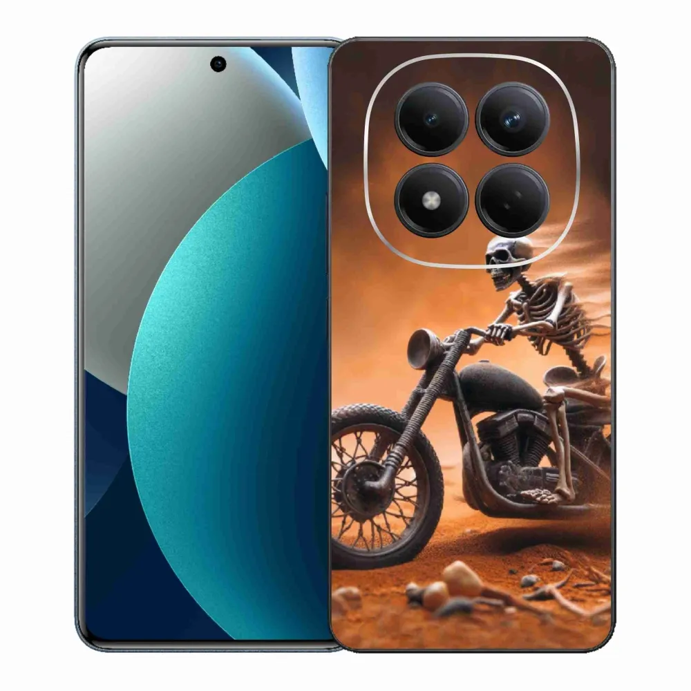 Púzdro s motívom kostry na motorke na Xiaomi Redmi Note 15 Pro poskytuje všetky výhody gélových krytov, a to v zaujímavom dizajne.