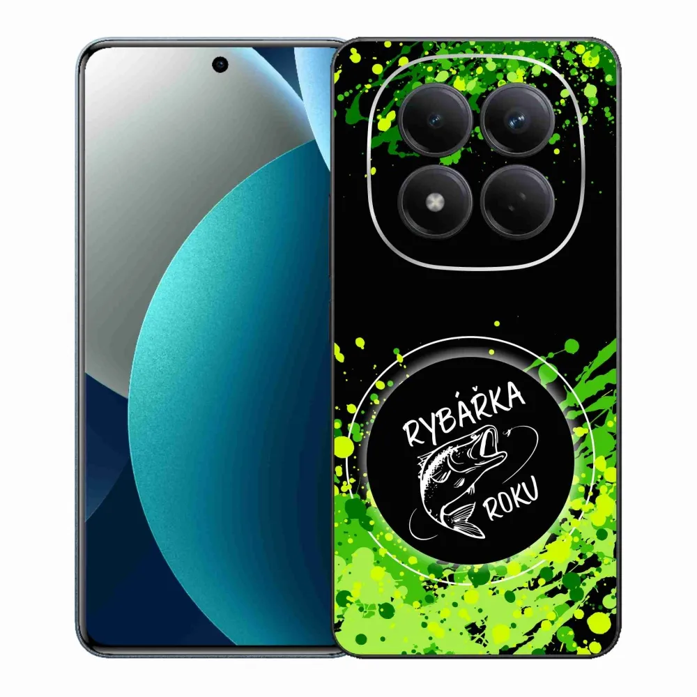 Pružný gélový obal mmCase s obrázkom na Xiaomi Redmi Note 15 Pro - rybárka roku čierne pozadie