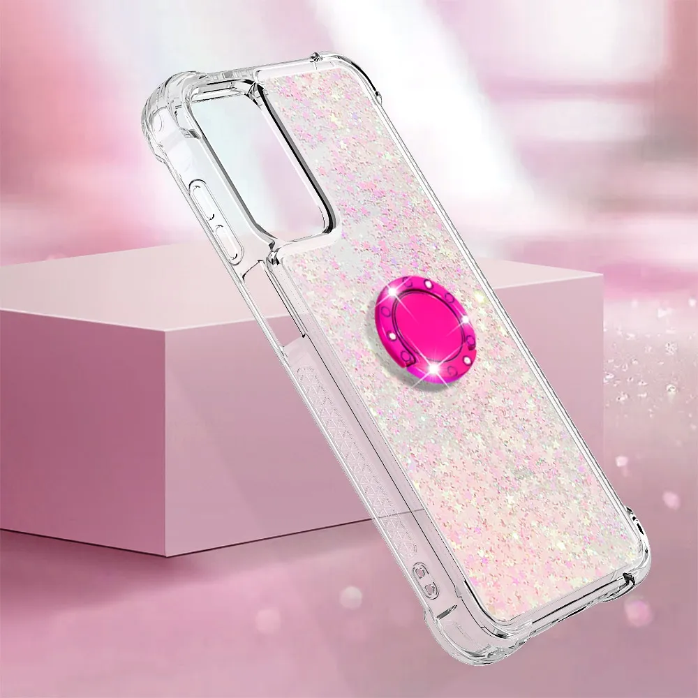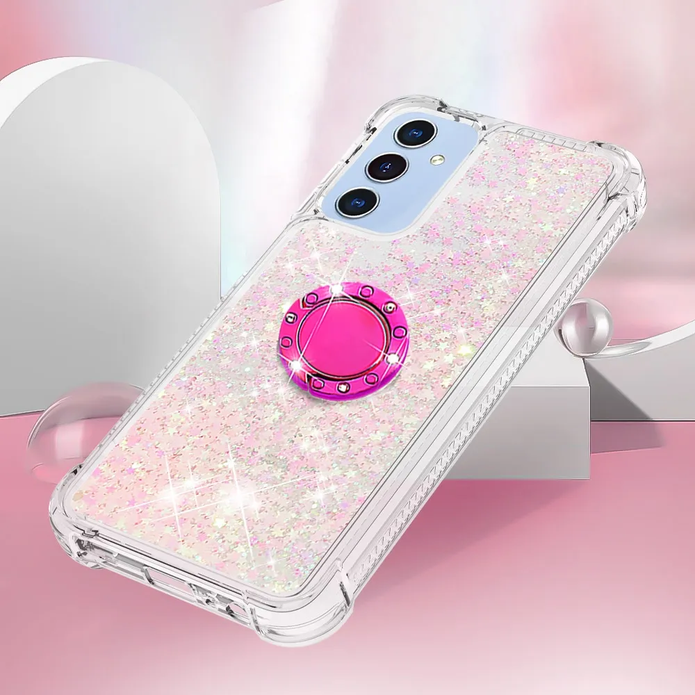 Ružový s hviezdičkami presýpací gélový kryt Glitt s krúžkom na prst na mobil Samsung Galaxy A17 4G/5G