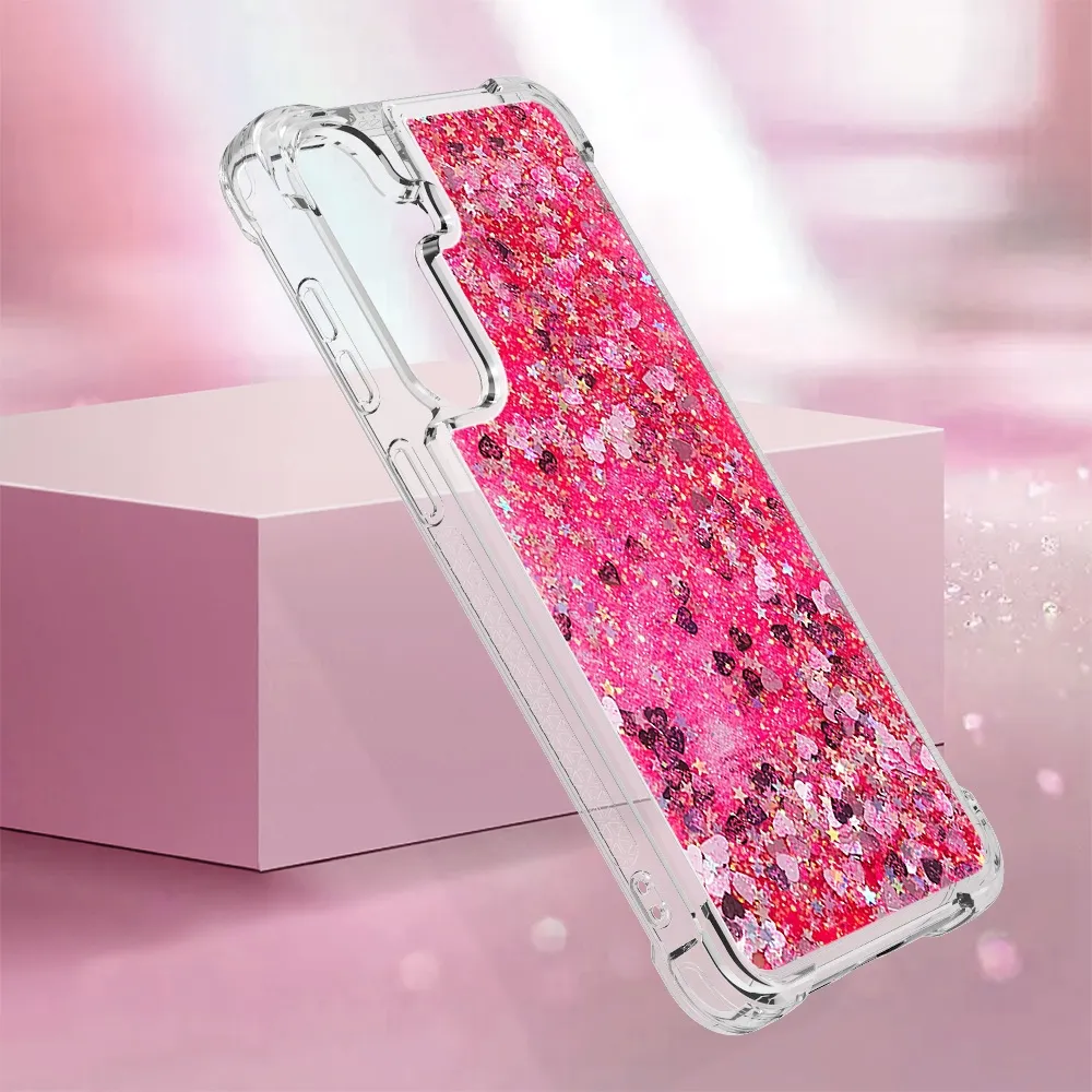 Ružový so srdiečkami presýpací gélový kryt Glitter na mobil Samsung Galaxy S26/S26 Pro