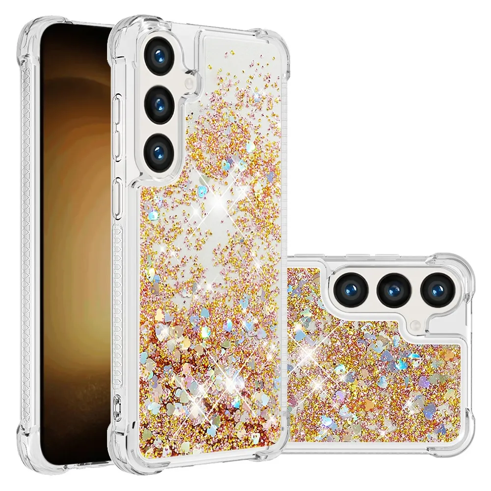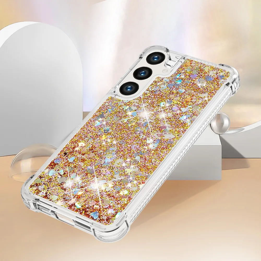 Glitter presýpací gélový obal na Samsung Galaxy S26+ - zlatý/srdiečka