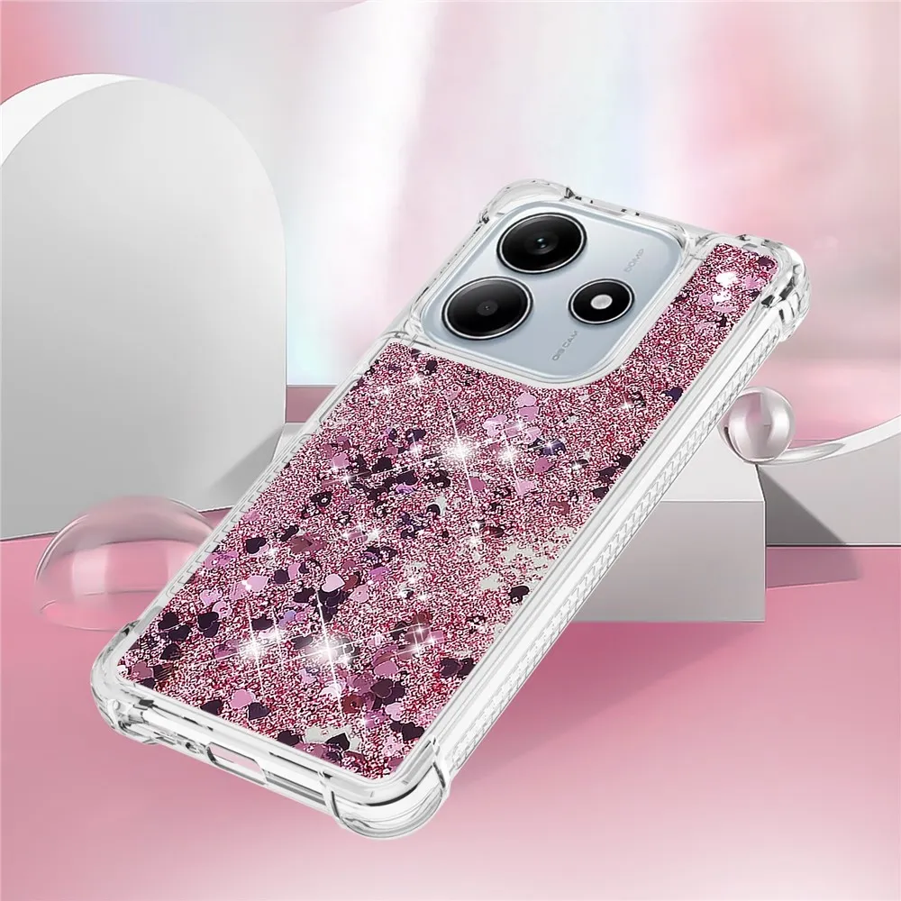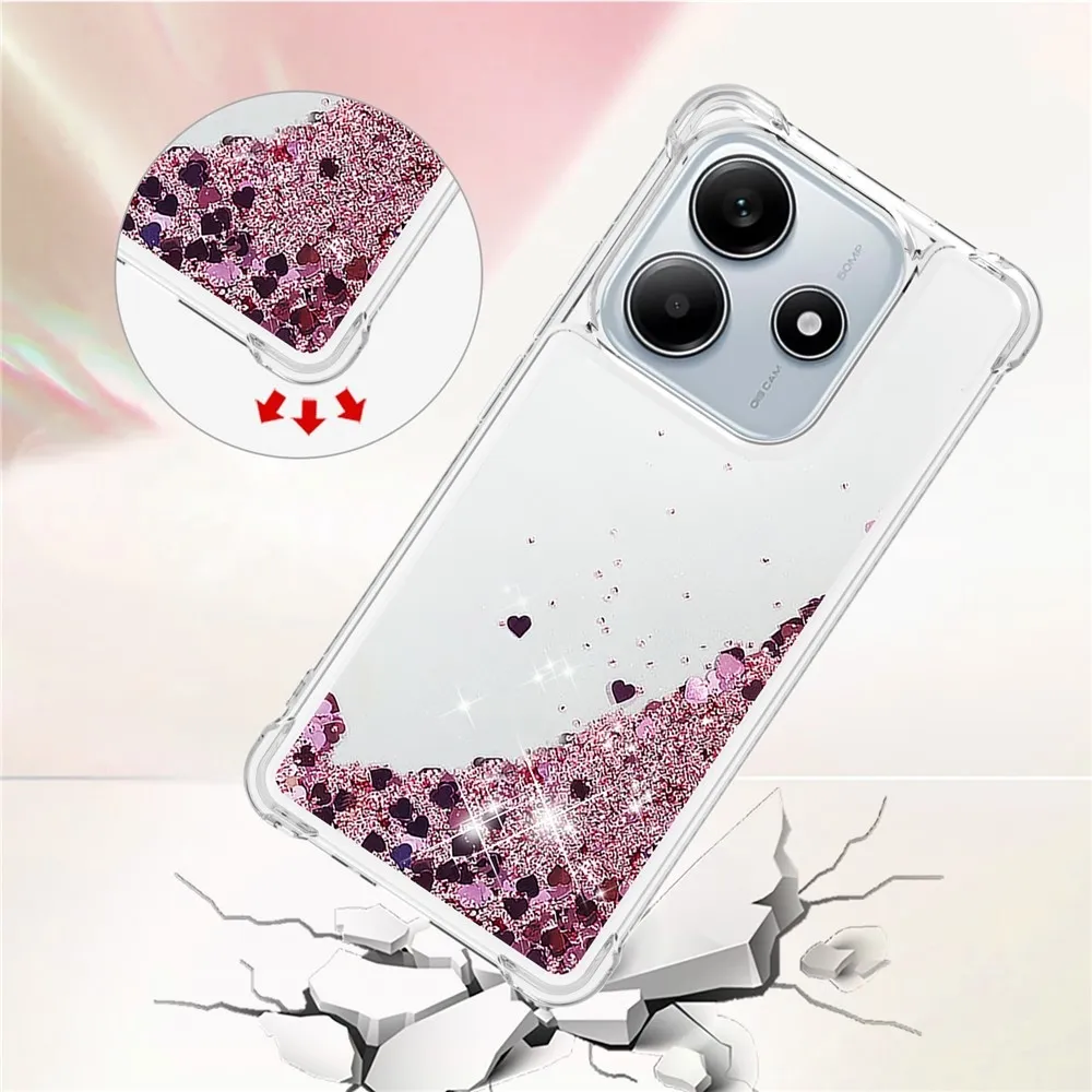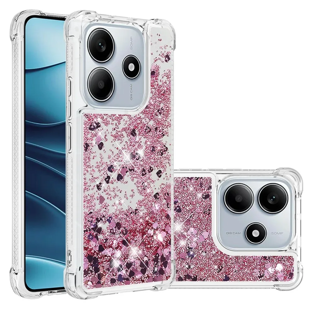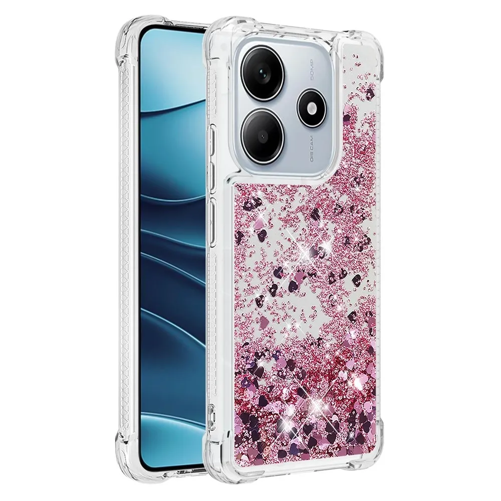 Glitter presýpací gélový obal na Xiaomi Redmi Note 14 5G - ružovozlatý/srdiečka
