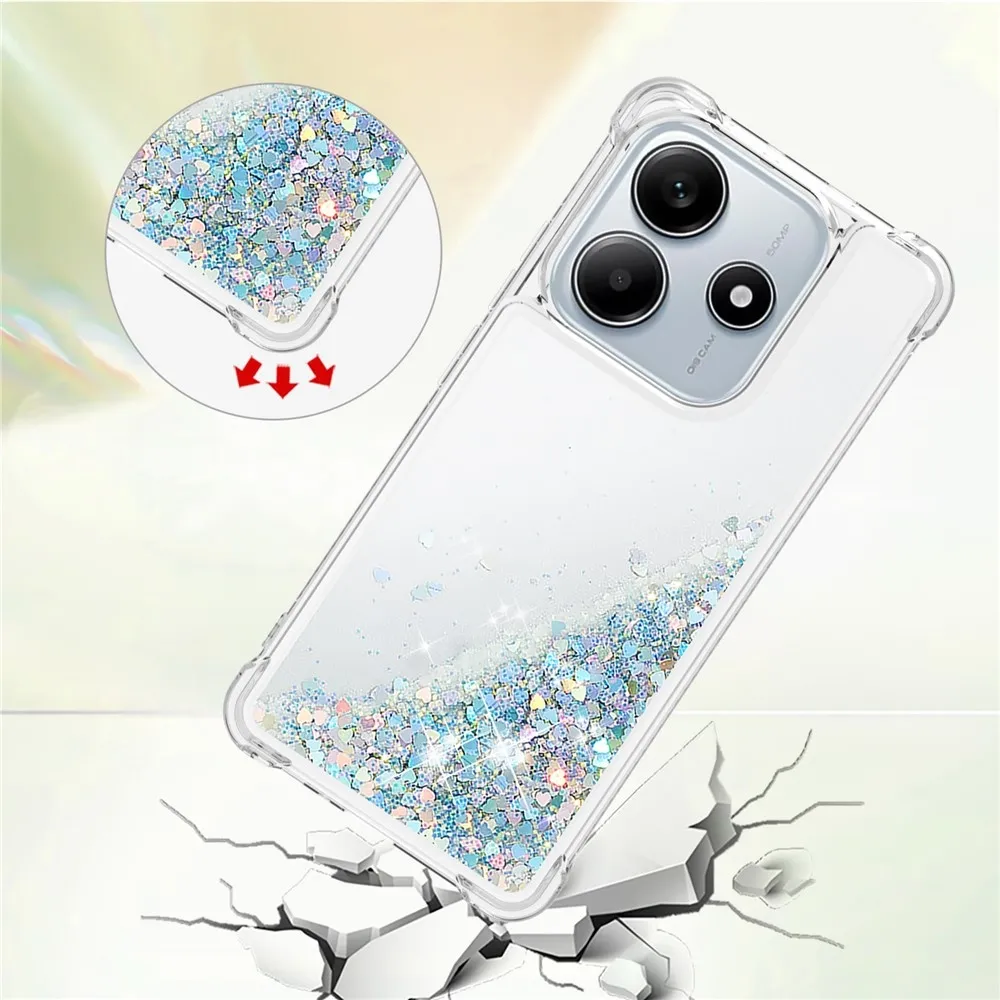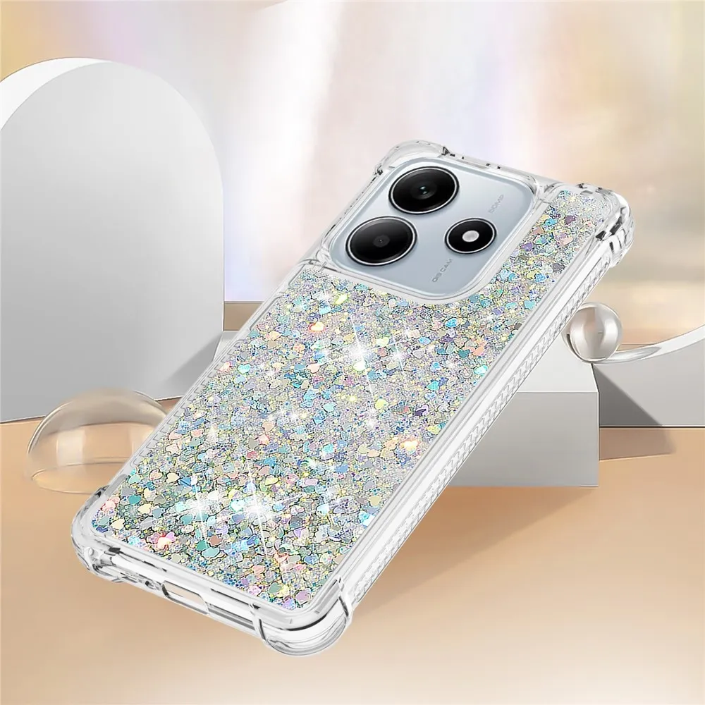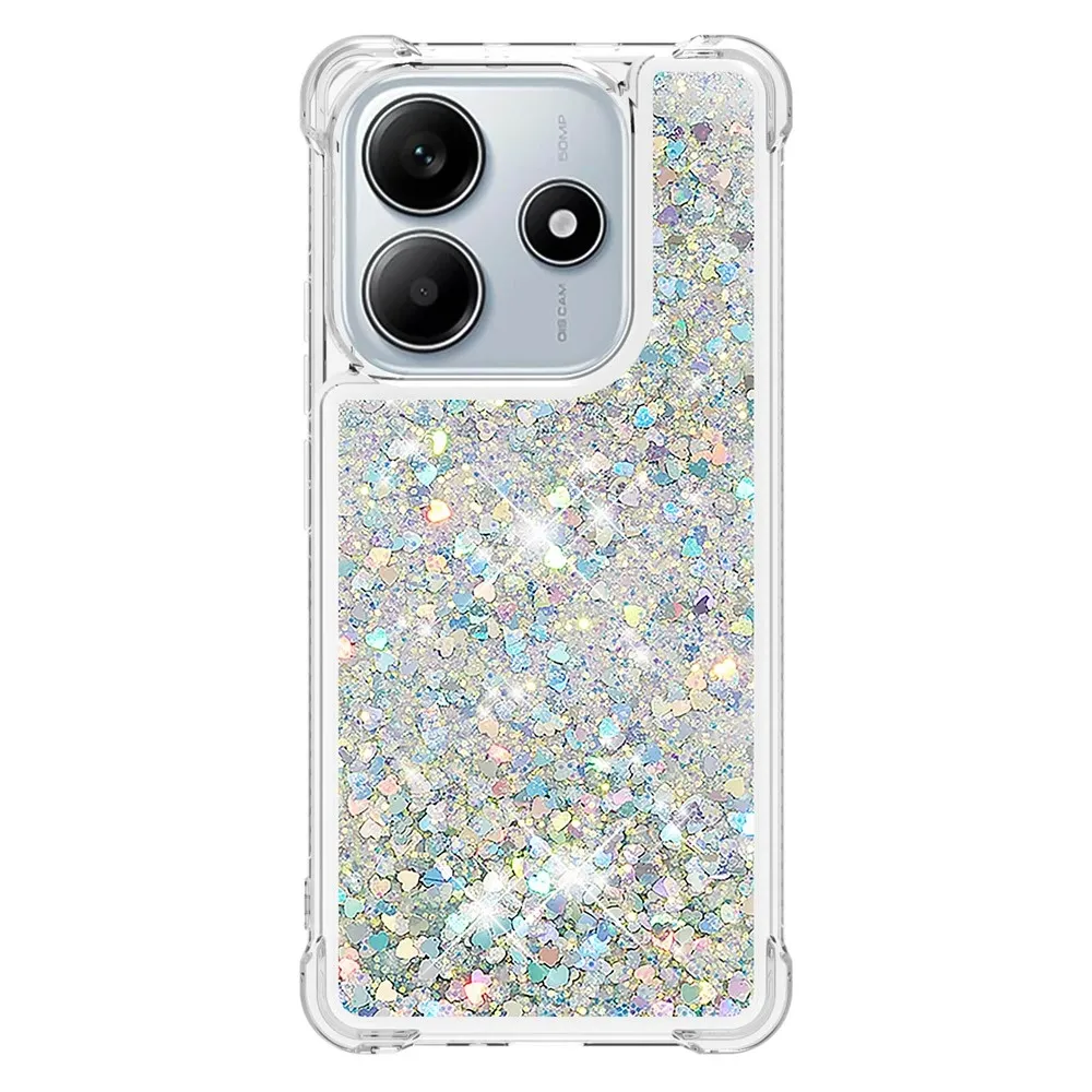 Glitter presýpací gélový obal na Xiaomi Redmi Note 14 5G - strieborný/srdiečka