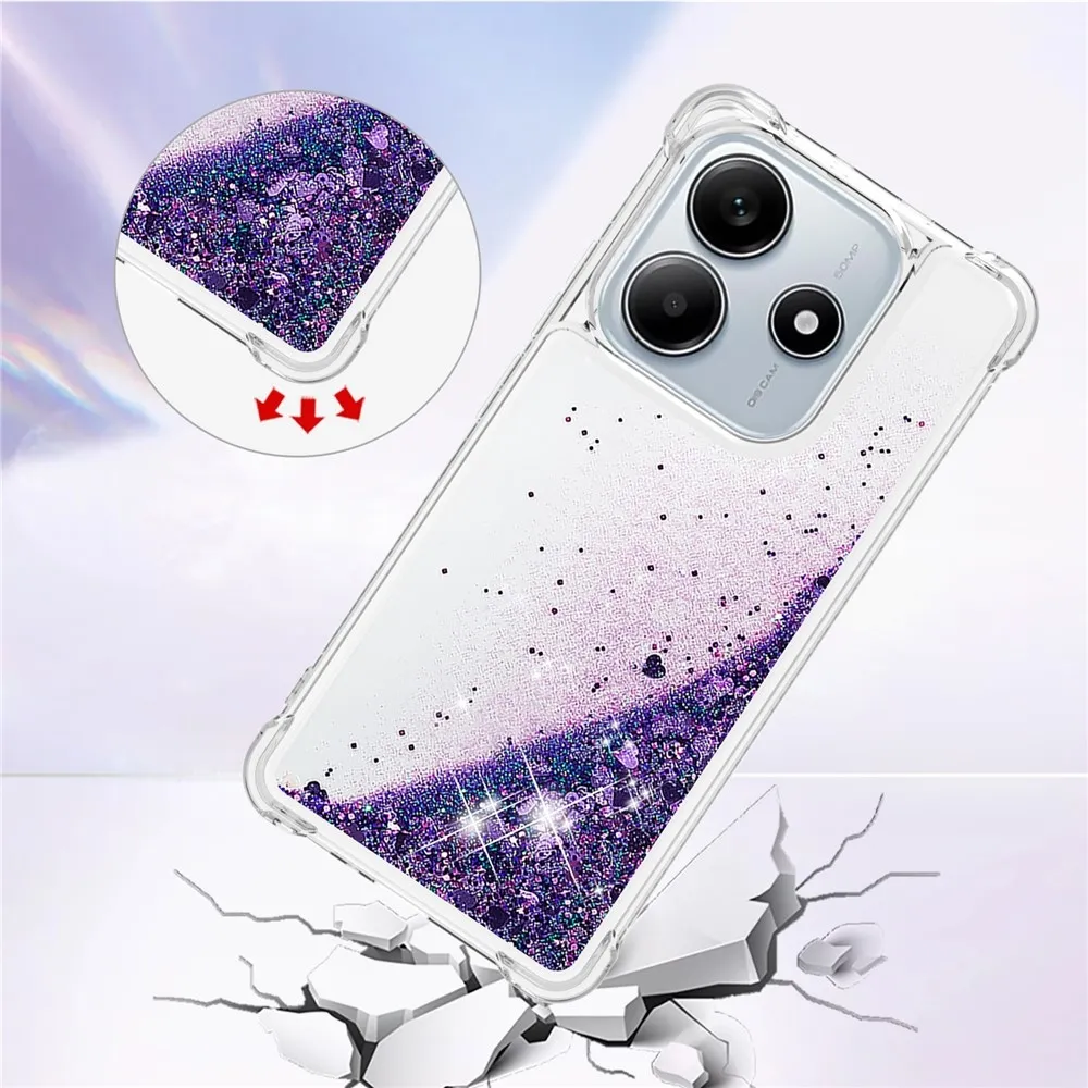 Glitter presýpací gélový obal na Xiaomi Redmi Note 14 5G - tmavofialový/srdiečka