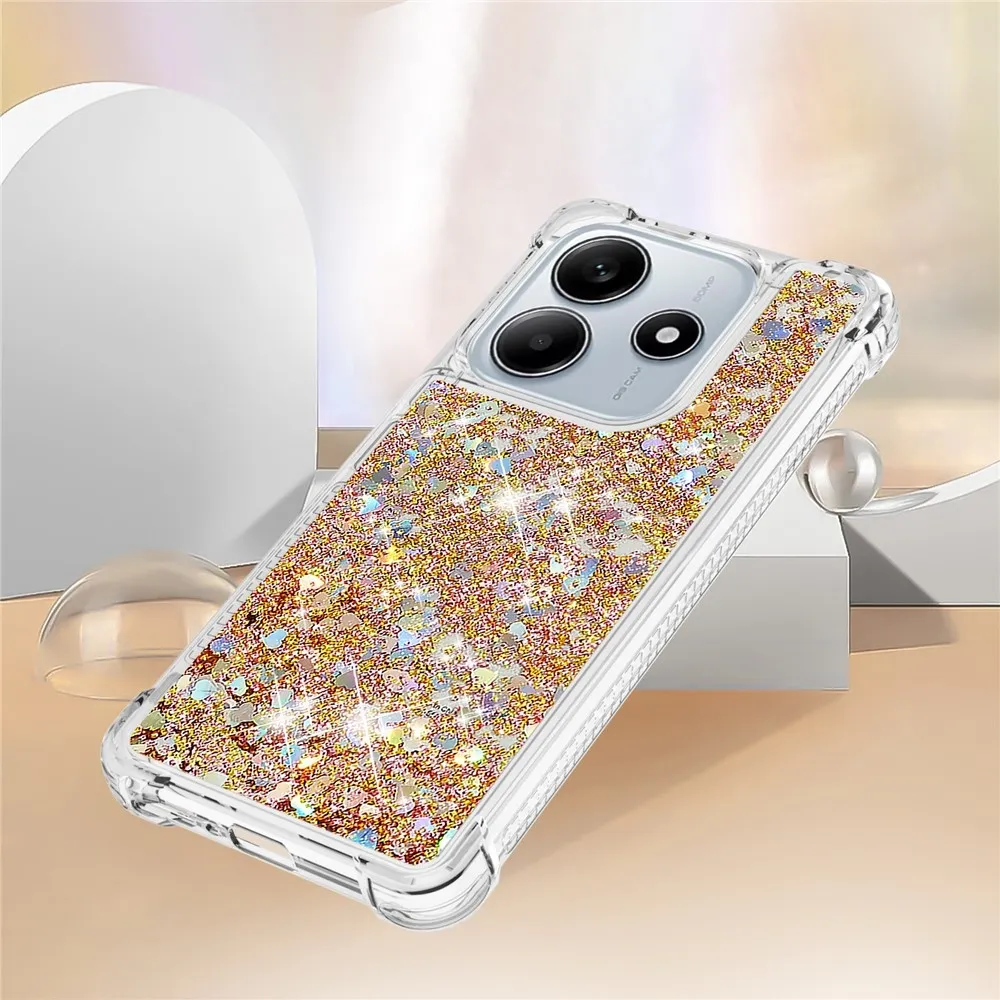 Glitter presýpací gélový obal na Xiaomi Redmi Note 14 5G - zlatý/srdiečka