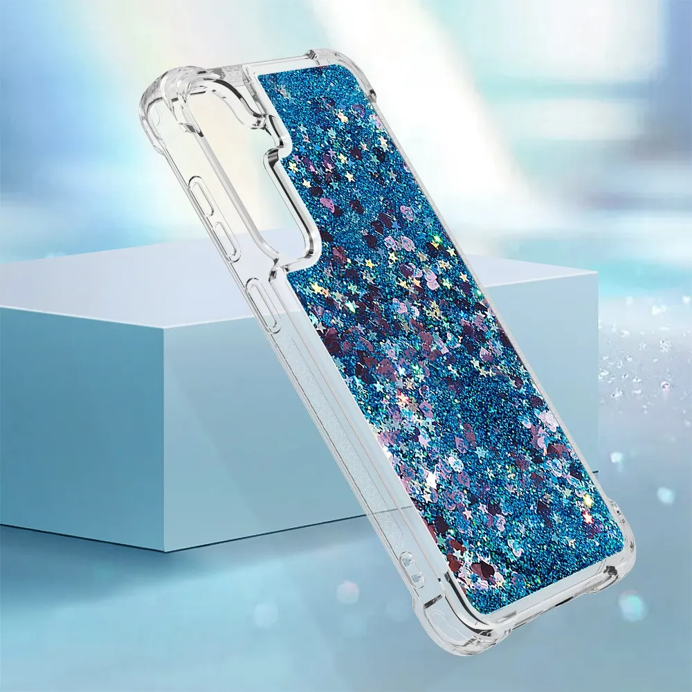 Modrý so srdiečkami presýpacie gélový kryt Glitter na mobil Samsung Galaxy S26/S26 Pro