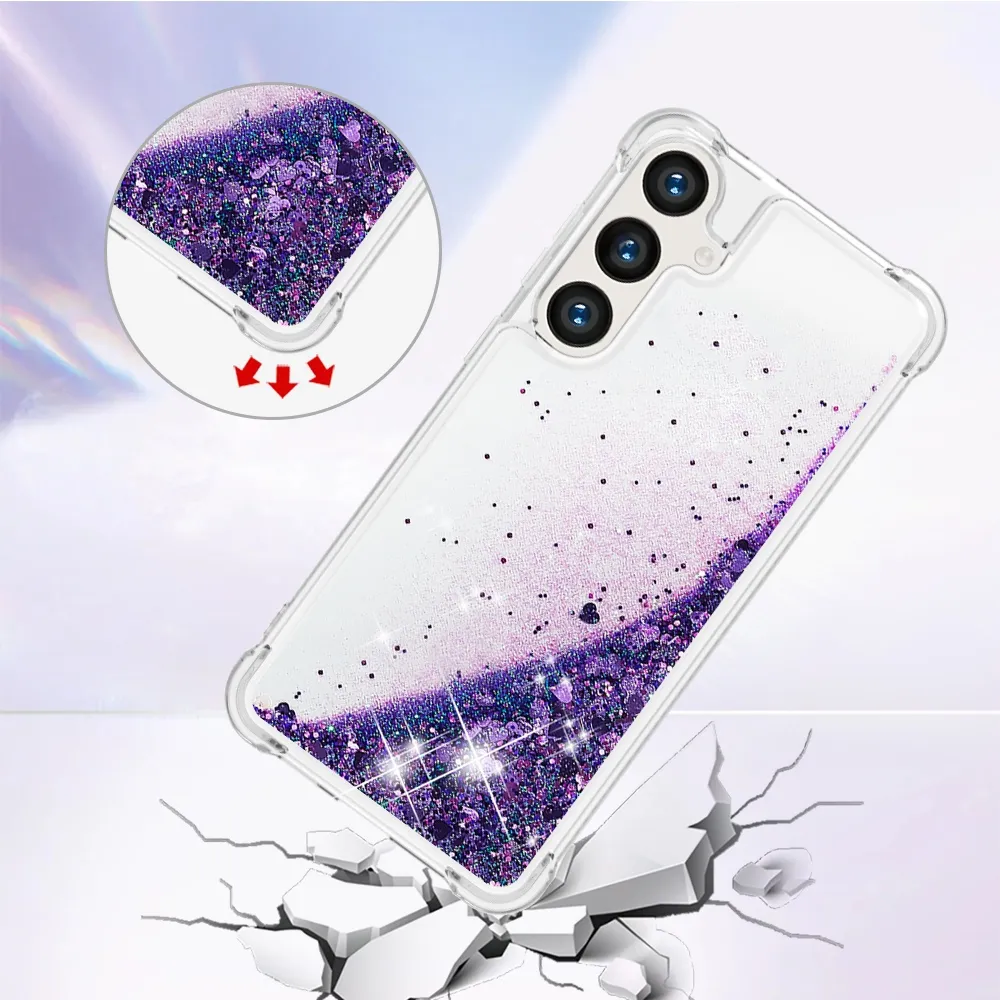 Glitter presýpacie gélový obal na Samsung Galaxy S26/S26 Pro - tmavofialový/srdiečka