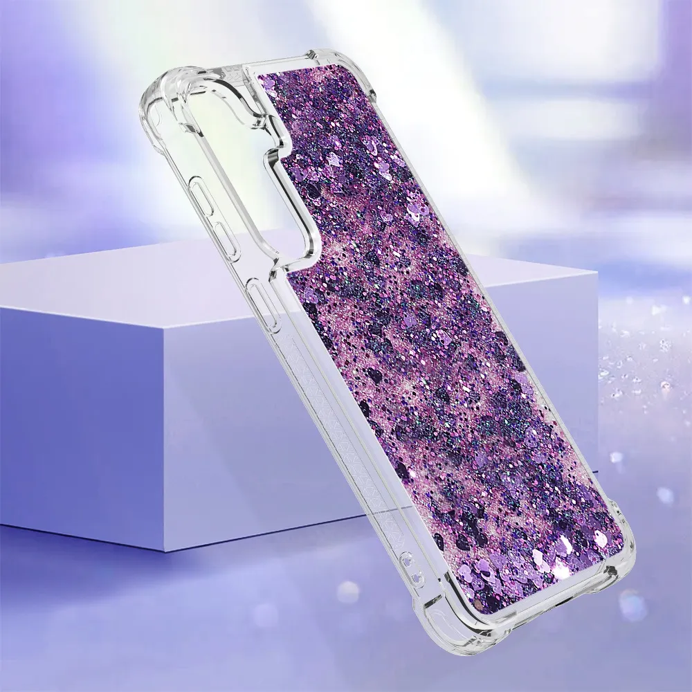 Tmavofialový so srdiečkami presýpací gélový kryt Glitter na mobil Samsung Galaxy S26/S26 Pro