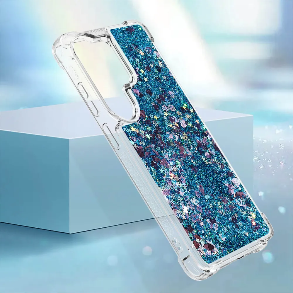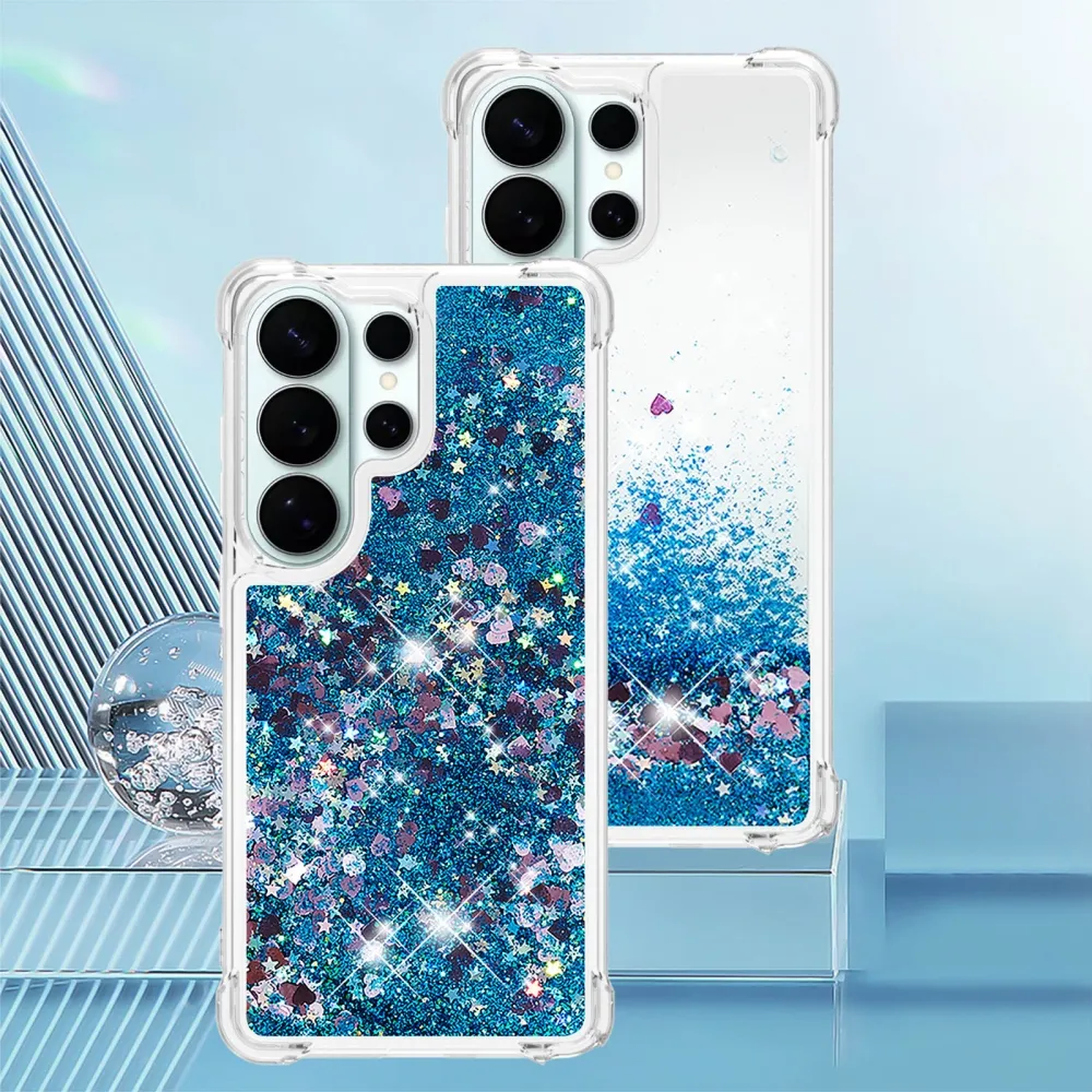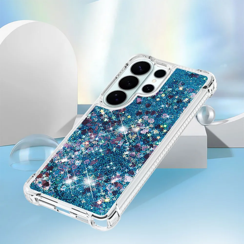 Glitter presýpacie gélový obal na Samsung Galaxy S26 Ultra - modrý/srdiečka