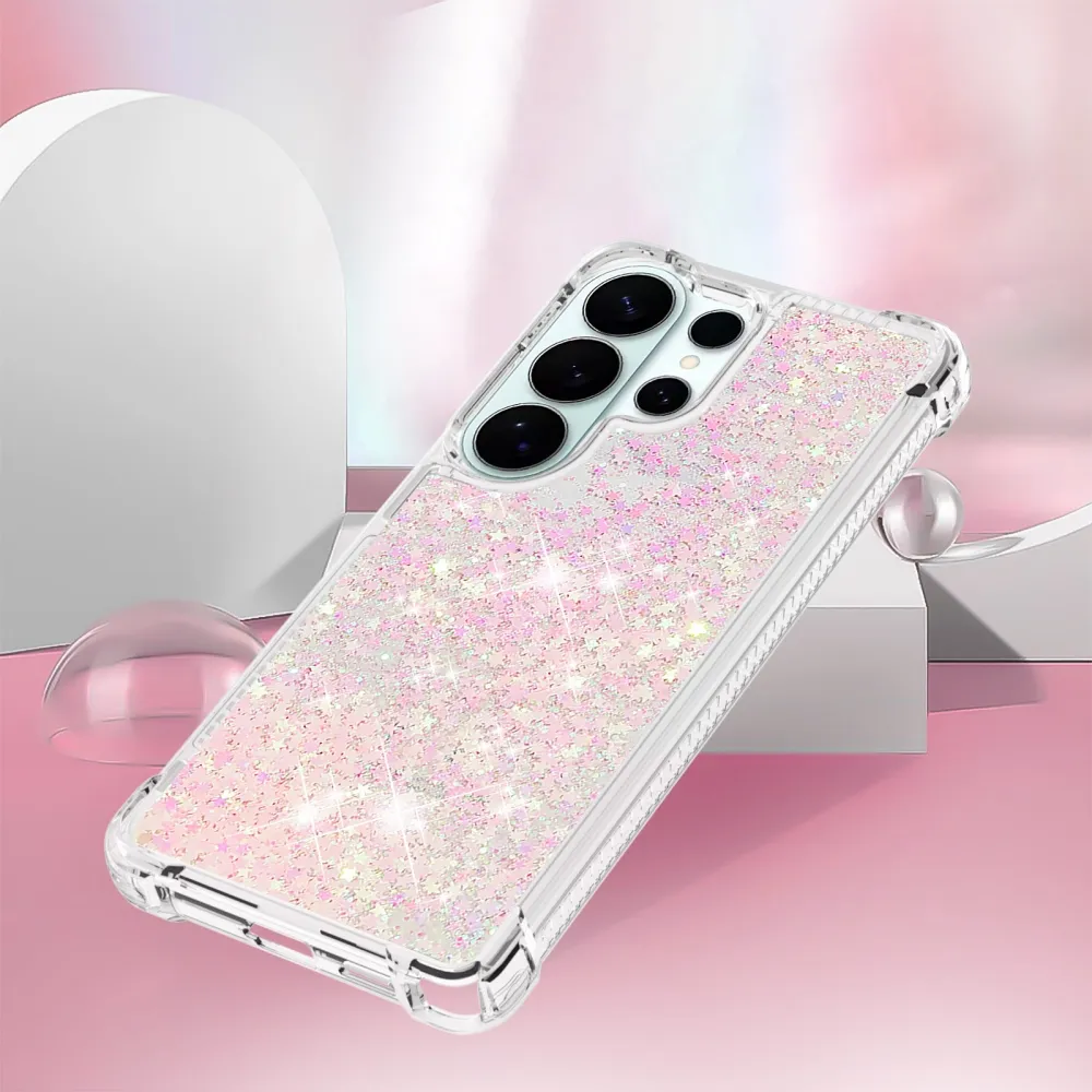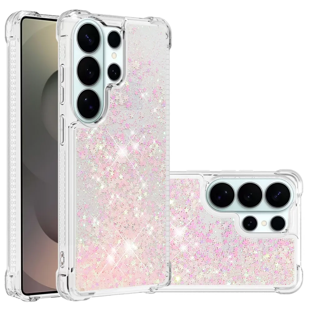 Glitter presýpacie gélový obal na Samsung Galaxy S26 Ultra - ružový/hviezdičky